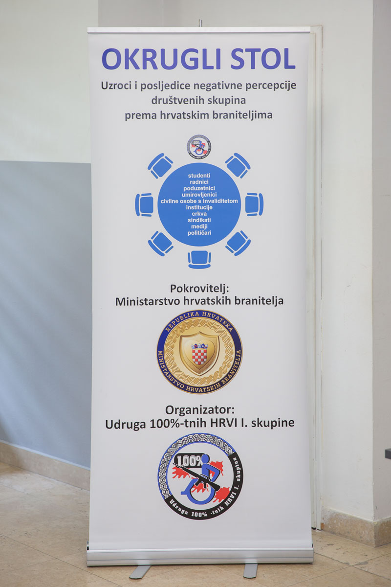 U holu Kulturno-informativnog centra Gospić u organizaciji Udruge 100 postotnih Hrvatskih ratnih vojnih  invalida I. skupine   danas je  održan Okrugli stol na temu „Utjecaj i posljedice negativne percepcije društvenih skupina prema hrvatskim braniteljima“. Predsjednik Udruge 100 postotnih HRVI I. skupine Đuro Glogoški pojasnio je kako su uzroci takvih odnosa prema 100 postotnim HRVI i općenito prema hrvatskim braniteljima brojni i dolaze iz pomalo neočekivanih izvora.