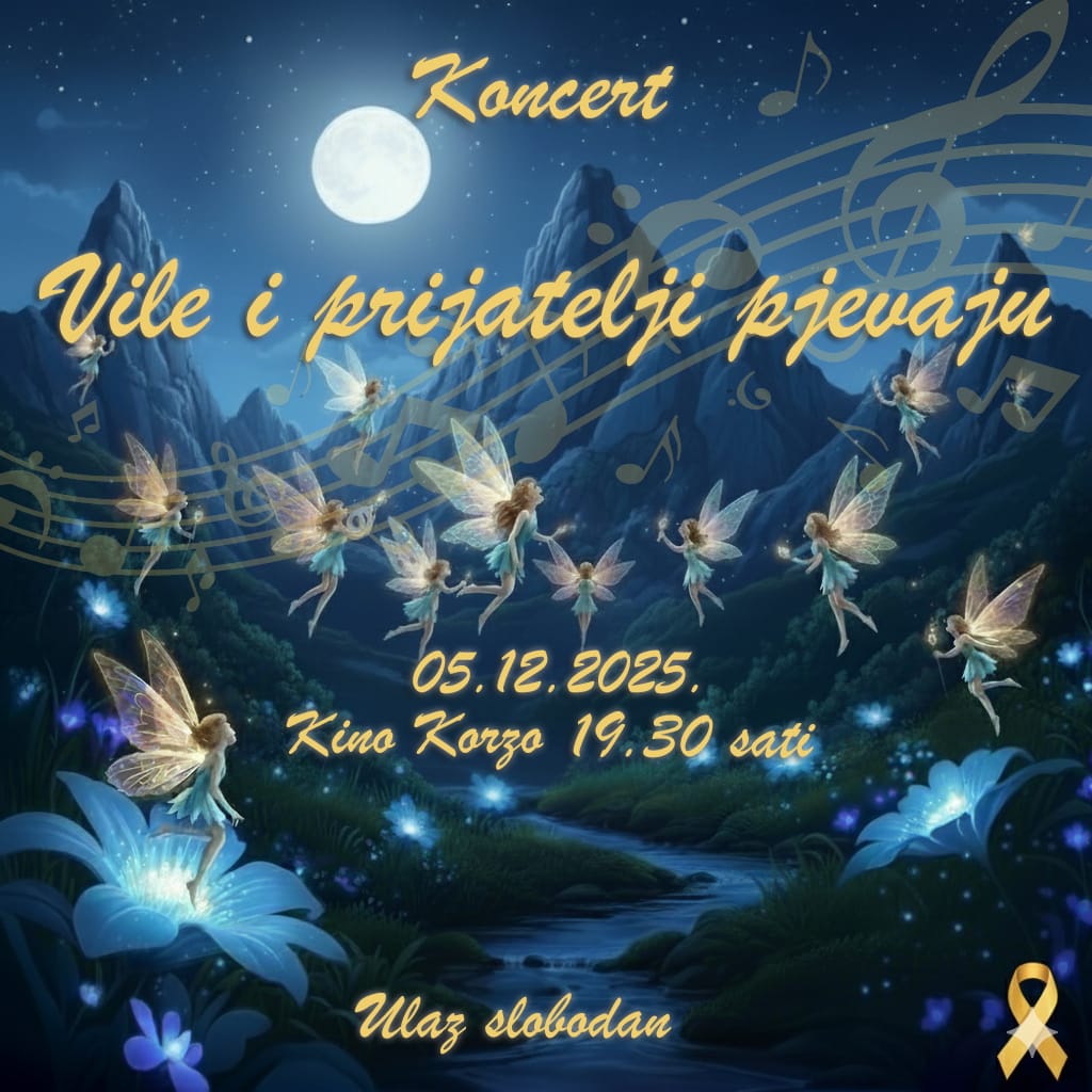 Udruga „Vila za Liku“ najavila je glazbeni koncert pod nazivom „Vile i prijatelji pjevaju“, koji će se održati u petak, 5. prosinca 2025. godine u kinu Korzo s početkom u 19.30 sati.