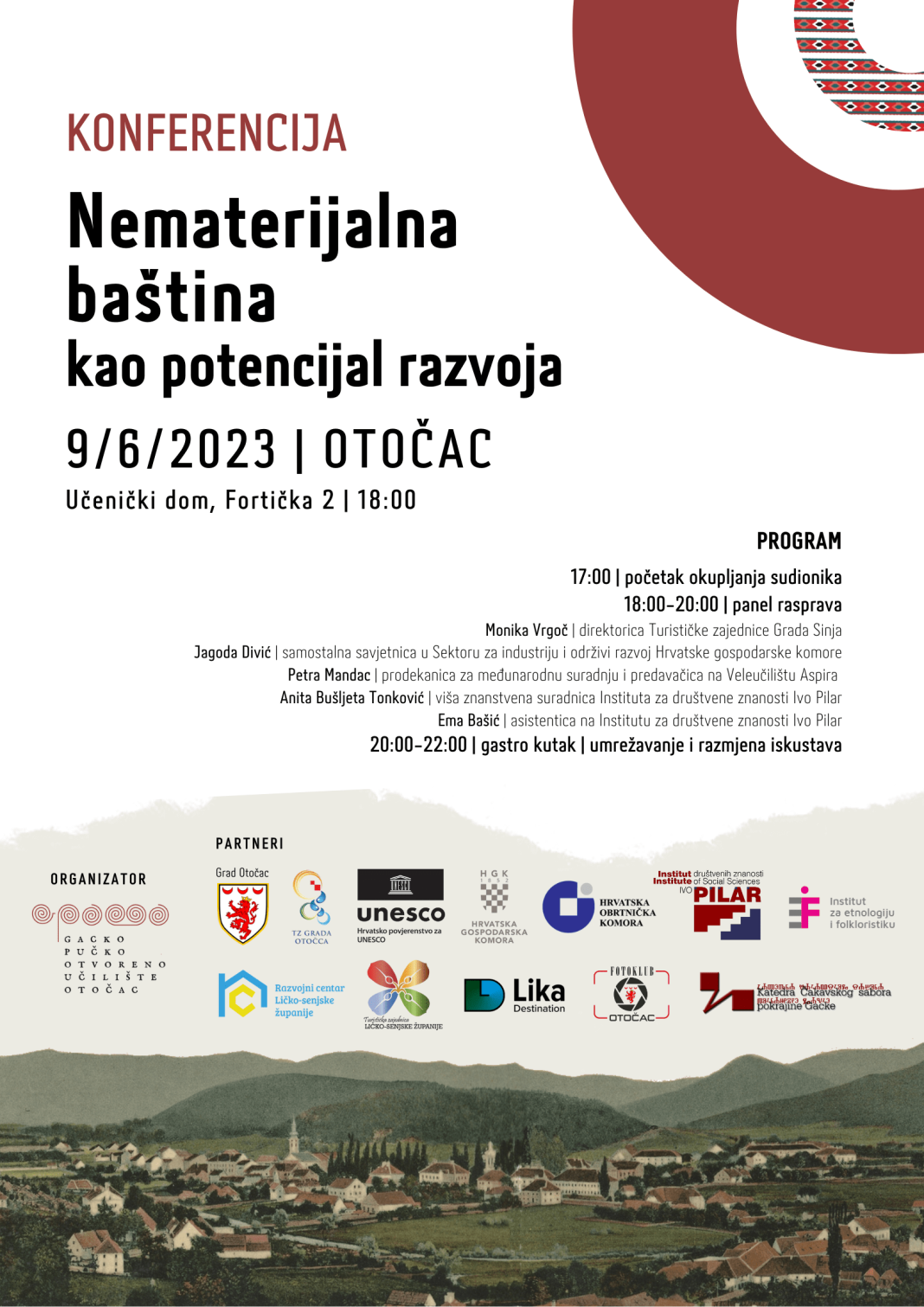 Konferencija će se održati uz partnersku podršku Hrvatskog ureda za UNESCO, u godini u kojoj se obilježava 20 godina od proglašenja UNESCO-ove Konvencije o zaštiti nematerijalne kulturne baštine, a popisu partnera pridružuju se Grad Otočac, Turistička zajednica Grada Otočca, Hrvatska gospodarska komora, Hrvatska obrtnička komora, Institut društvenih znanosti Ivo Pilar, Institut za etnologiju i folkloristiku, Razvojni centar Ličko-senjske županije, Turistička zajednica Ličko-senjske županije, Klaster Lika Destination, Fotoklub Otočac i Katedra Čakavskog sabora pokrajine Gacke.