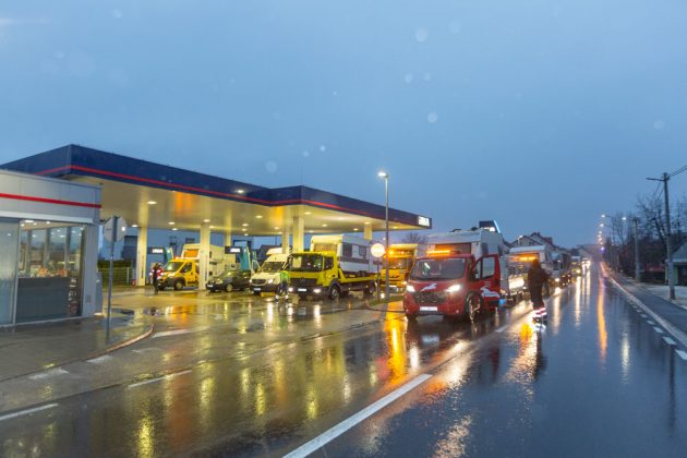 Kolona je jutros u 07:00 sati krenula za okolna sela Petrinje i Siska koje je organizirano ciljano i ide ljudima kojima je ranije ustanovljena potrebita pomoć.