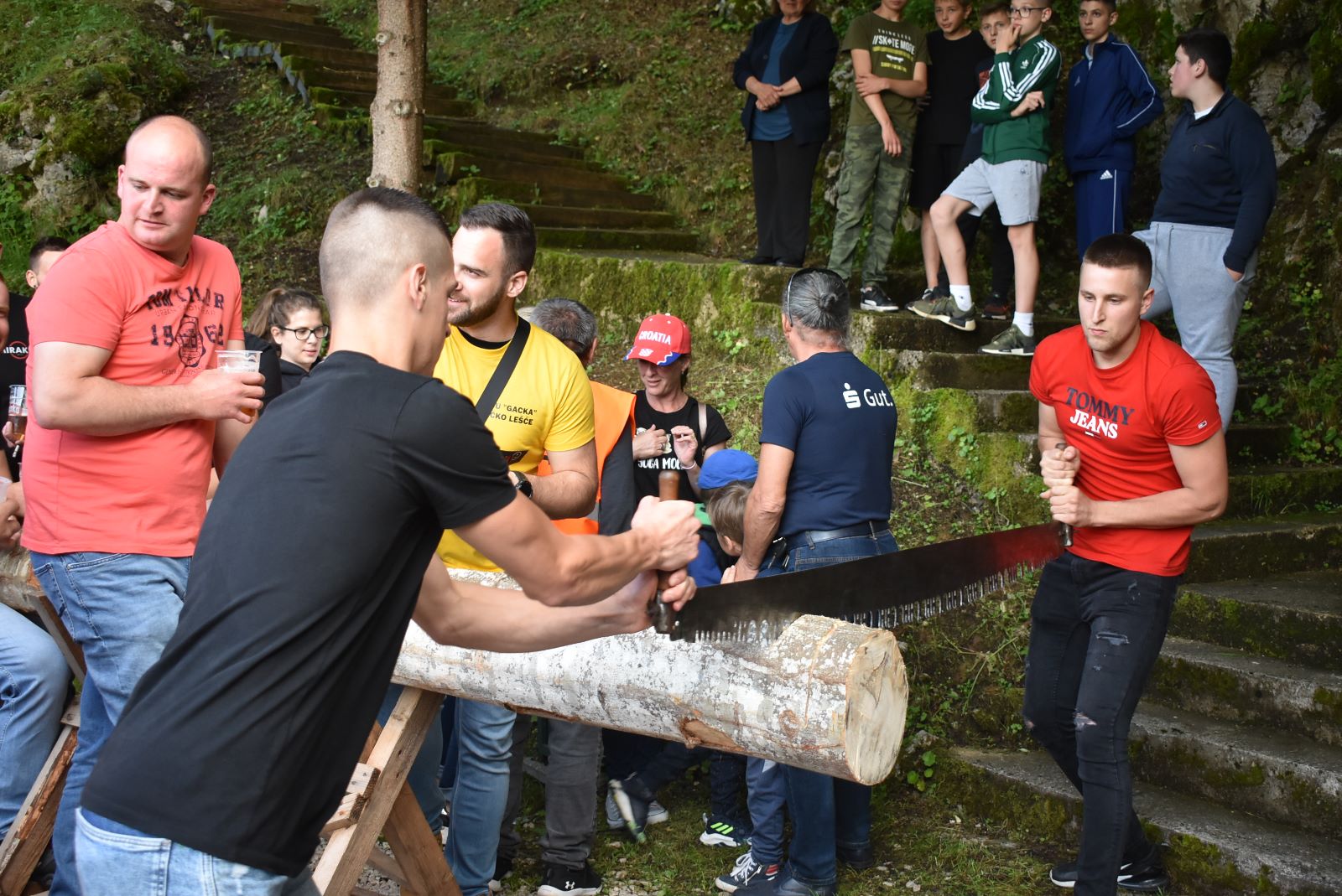 Ravnateljica Jelena i asistentica Ruža primale prijave za natjecanje. A natjecanja su bila popraćena dobrim raspoloženjem. Za pilanje trupca vladalo je najveće zanimanje jer se diljem Like drvo za ogrjev i za građu stoljećima pilalo isključivo ručno. Natjecatelji su bili mahom mladi ljudi koji su navikli pilati drva motornim pilama. S dva metra dugom mehaničnom pilom išlo je malo teže. Od 10 prijavljenih parova niti jedan nije završio posao, uz primjedbe kako u ovoj priči nešto ne valja.
