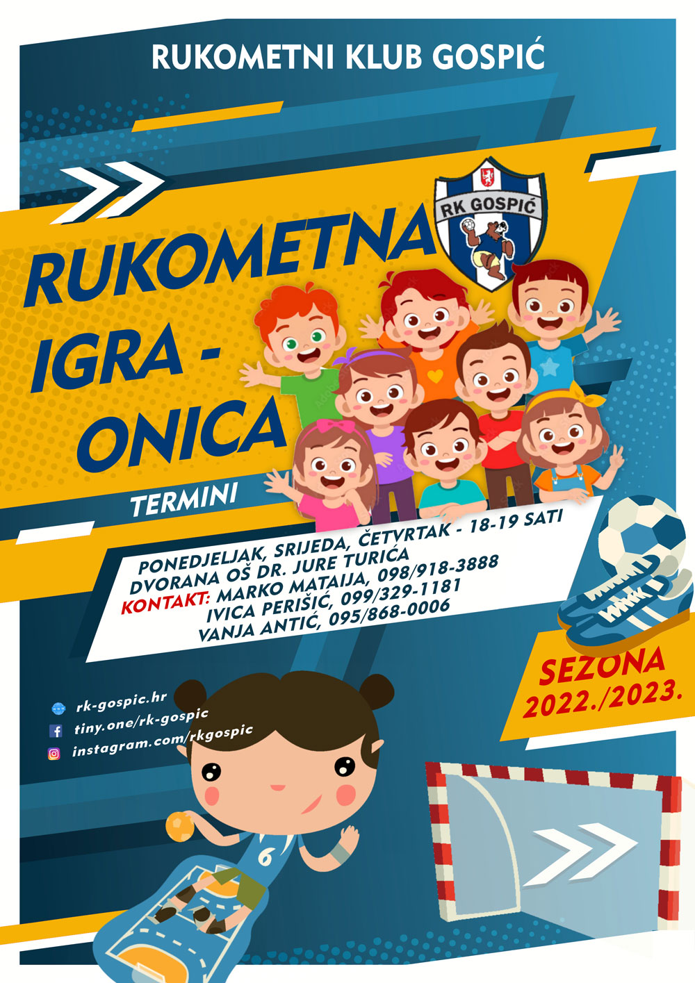 Rukometni klub „Gospić“ je pokrenuo još jedan projekt usmjeren prema djeci. Riječ je o Rukometnoj igraonici, treningu koji će kroz igru postupno usmjeravati djecu prema rukometu dajući im temelje za daljnji rukometni i psihofizički razvoj.