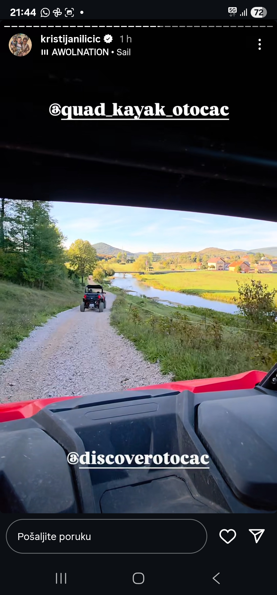Njihova avantura započela je u Vrhovinama spustom niz adrenalinski Zip Line Pazi Medo –najdužim zip lineom u ovom djelu Europe, a nastavila se obilaskom Tonković Vrila, jednom od izvora rijeke Gacke. Zatim je uslijedio ručak u restoranu Vrilo Gacke u kojem su uživali u fine dining specijalitetima. Potom je uslijedila vožnja buggyja uz rijeku Gacku i šumski dio Otočca, s agencijom Quad & Kayak Otočac, te razgledavanje utvrde Fortica kroz proširenu stvarnost putem aplikacije Discover Otočac. Dan je završen šetnjom po Otočkoj šetnici i vrhunskom pizzom i još boljim palačinkama u pizzeriji Ruspante.