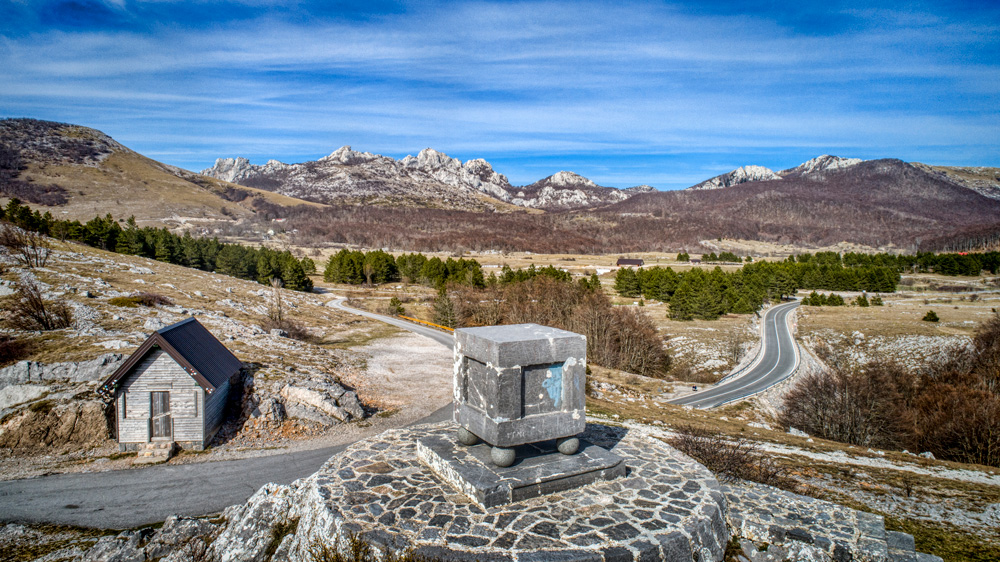 Kubus, koji stoji kao nijemi svjedok gradnje ceste Karlobag – Gospić, jedan je od rijetkih povijesnih spomenika koji povezuju kontinentalnu i primorsku Hrvatsku. Smješten na Oštarijskom sedlu, s njega se pruža spektakularan pogled na Karlobag, otok Pag i Velebitski kanal. S jedne strane uklesan je natpis „Ferdinandus I. Austrijski imperator MDCCCXLVI.“, dok druga strana nosi njemački natpis koji označava vrhunac novog prometnog pravca kroz Velebit.
