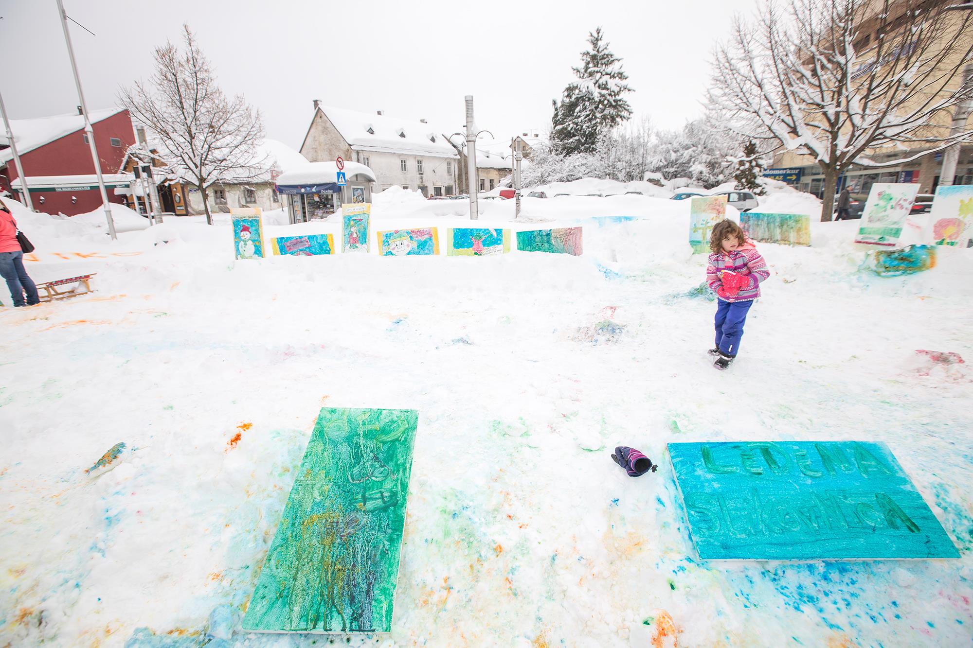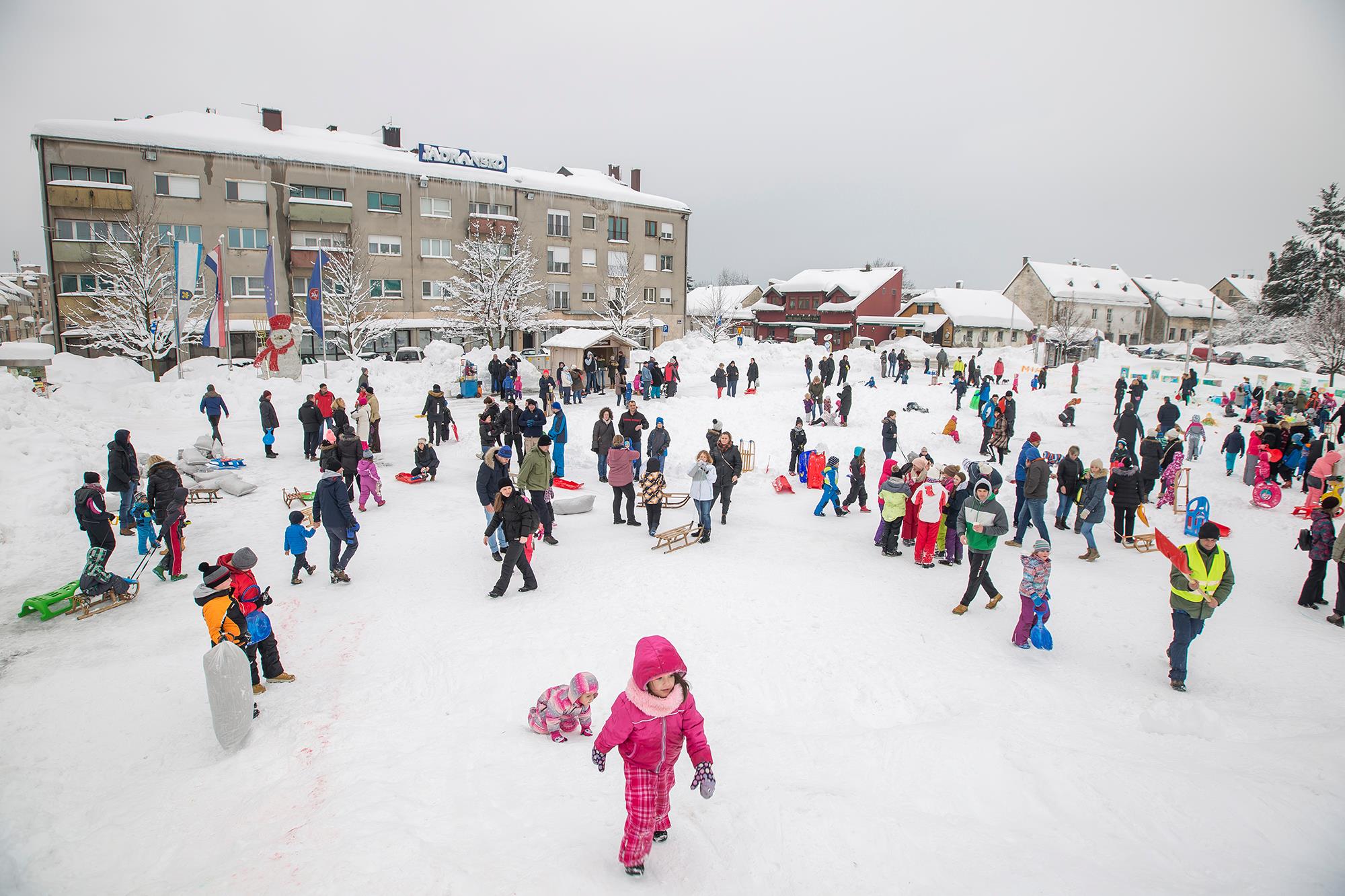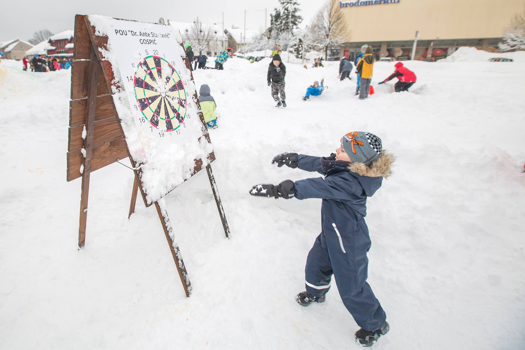 Svako zlo za neko dobro, stara je poslovica. Tako je danas bilo u Gospiću gdje su vrijedni ljudi od dosadnog snijega stvorili na Trgu Stjepana Radića zimsko igralište. Mali i veliki pohrlili su na umjetni brežuljak i spuštali se saonicama, oni hrabriji na skijama. Svoju kućicu sa delicijama imao je Martin, drugdje se dijelio čaj. Ljubitelji šanka došli su na svoje kroz kuhano vino i kobasice. Danas se vidjela i kreativnost djece koja su se posebnim bojama nadmetala u izradi ledenih slikovnica, vidjeli smo i utrke u vrećama, snježni pikado, zanimljive animatore…