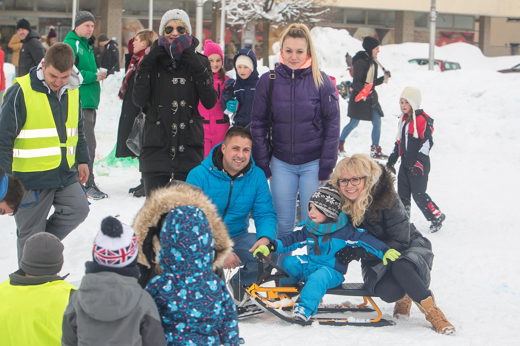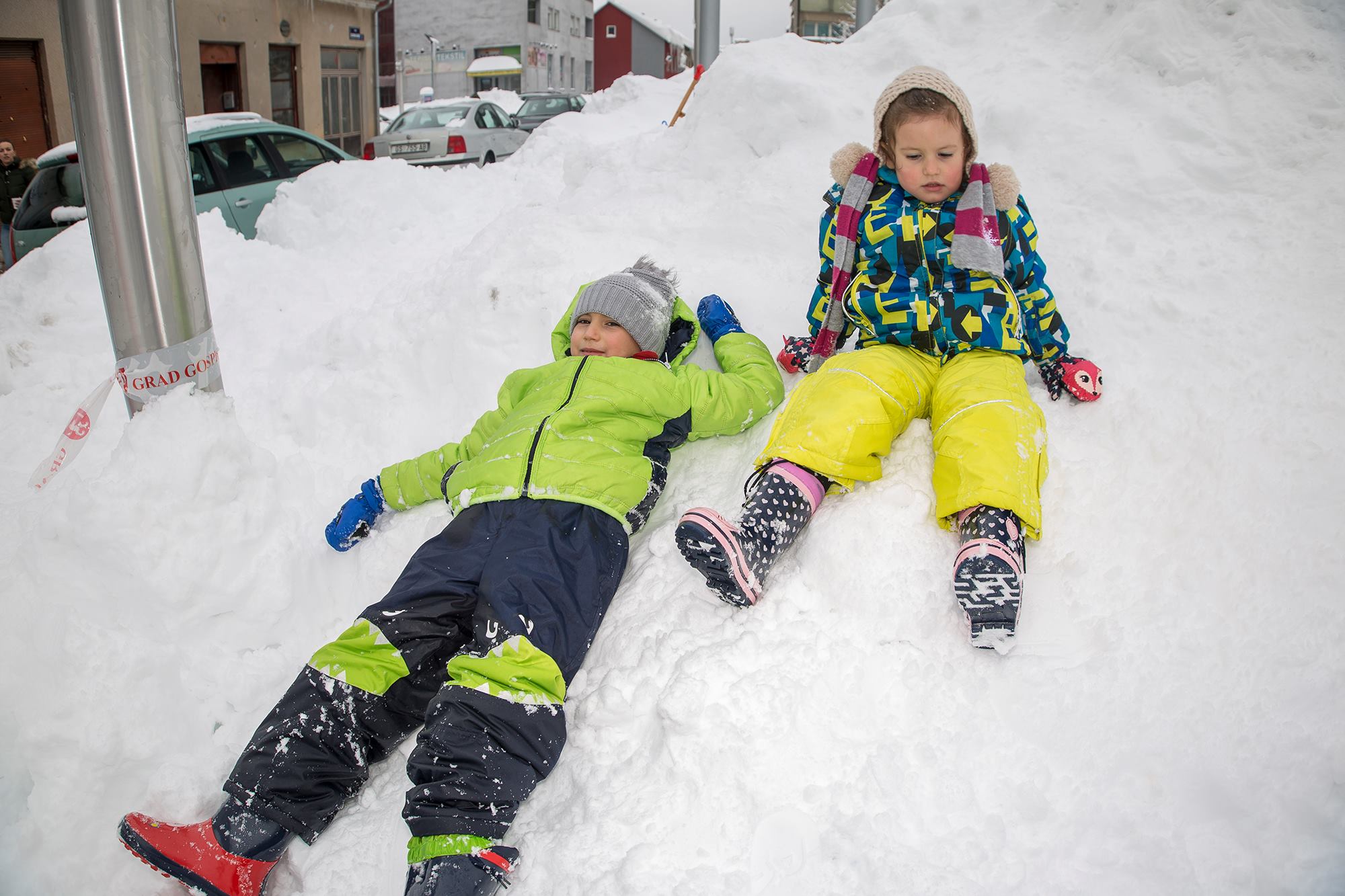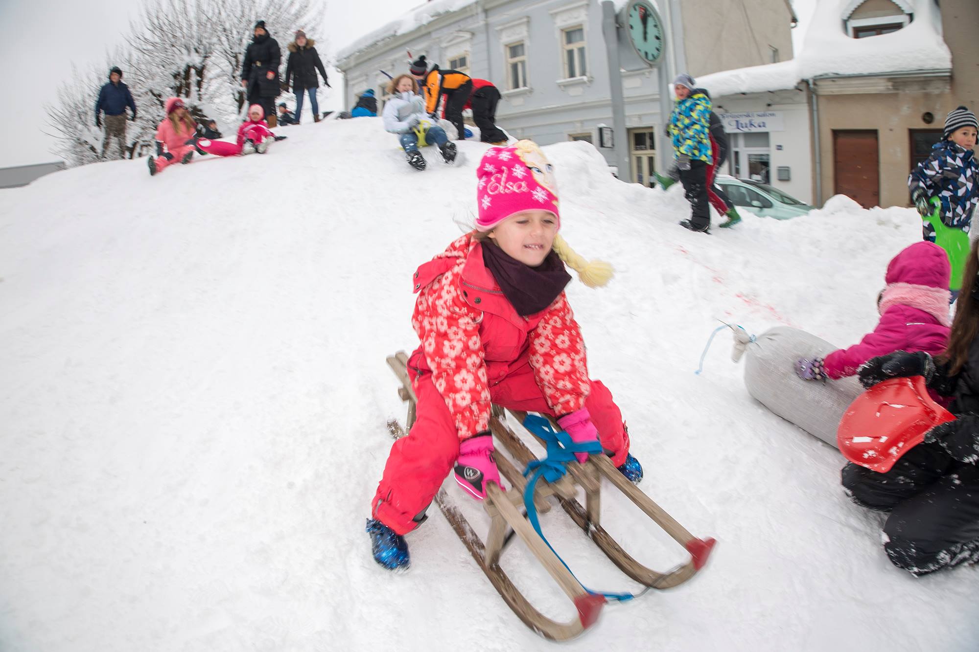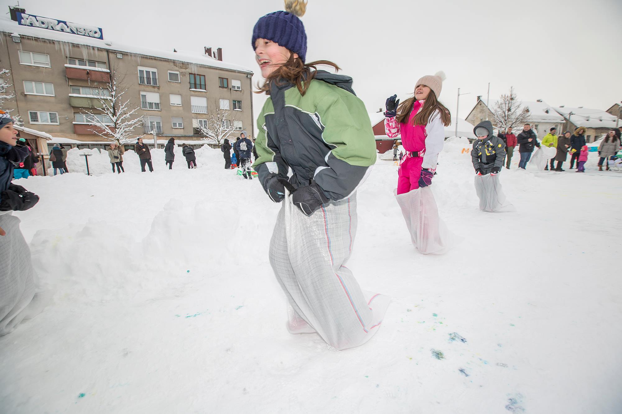 Svako zlo za neko dobro, stara je poslovica. Tako je danas bilo u Gospiću gdje su vrijedni ljudi od dosadnog snijega stvorili na Trgu Stjepana Radića zimsko igralište. Mali i veliki pohrlili su na umjetni brežuljak i spuštali se saonicama, oni hrabriji na skijama. Svoju kućicu sa delicijama imao je Martin, drugdje se dijelio čaj. Ljubitelji šanka došli su na svoje kroz kuhano vino i kobasice. Danas se vidjela i kreativnost djece koja su se posebnim bojama nadmetala u izradi ledenih slikovnica, vidjeli smo i utrke u vrećama, snježni pikado, zanimljive animatore…