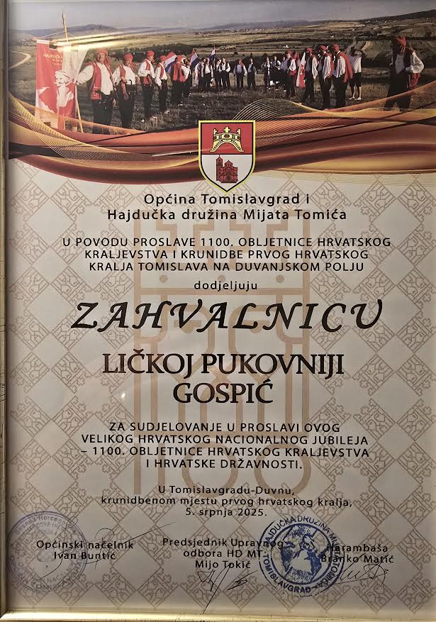 Nakon promocije monografije na Trgu gange i hajdučke družine održana je svečana smotra i predstavljanje Povijesnih postrojbi hrvatske vojske čiji su predstavnici dali prijavak načelniku Tomislavgrada Ivanu Buntiću, a na samom kraju ove velebne središnje proslave 1100 godina Hrvatskog Kraljevstva održana je i 12. Revija izbora najljepše Hrvatice u narodnoj nošnji izvan “Republike Hrvatske” te koncert klape Cambi.
