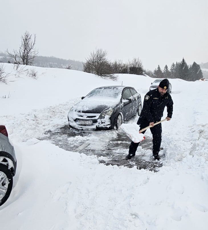 Postaja granične policije Korenica je jučer u dopodnevnim satima zaprimila dojavu da je više osobnih automobila zapelo u snijegu na dionici državne ceste između Korenice i Bjelopolja i to za vrijeme dok je zbog snježnog nevremena promet bio obustavljen za sve kategorije vozila.