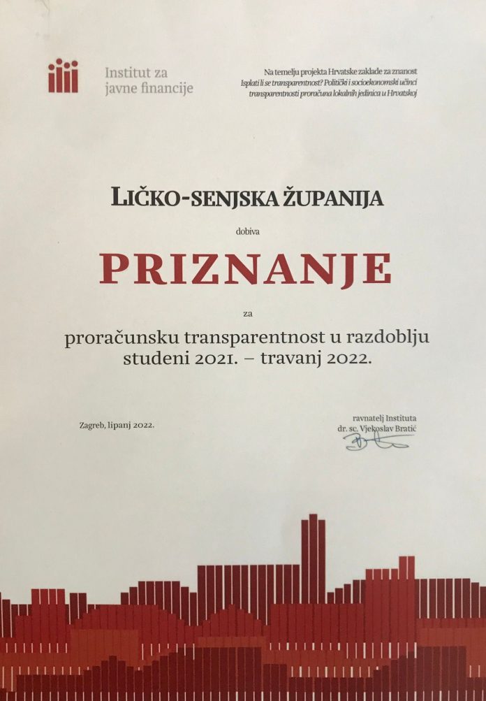 Home Gospić Ličko-senjskoj županiji dodijeljeno priznanje za proračunsku transparentnost GospićvijestiZanimljivosti Ličko-senjskoj županiji dodijeljeno priznanje za proračunsku transparentnost By Nikola Mraović - 7 srpnja, 2022 0 Facebook Institut za javne financije dodijelio je Ličko-senjskoj županiji priznanje za proračunsku transparentnost u razdoblju studeni 2021. – travanj 2022. Gs Press RELATED ARTICLESMORE FROM AUTHOR Troskot traži očitovanje Grada Gospića o zaprimanju otpada Potpisani ugovori vrijedni 314.000 eura: gotovo 50 % više sredstava za operativne službe i turizam 36-godišnjak i 32-godišnjakinja iz Gospića mjesecima prodavali kokain i marihuanu