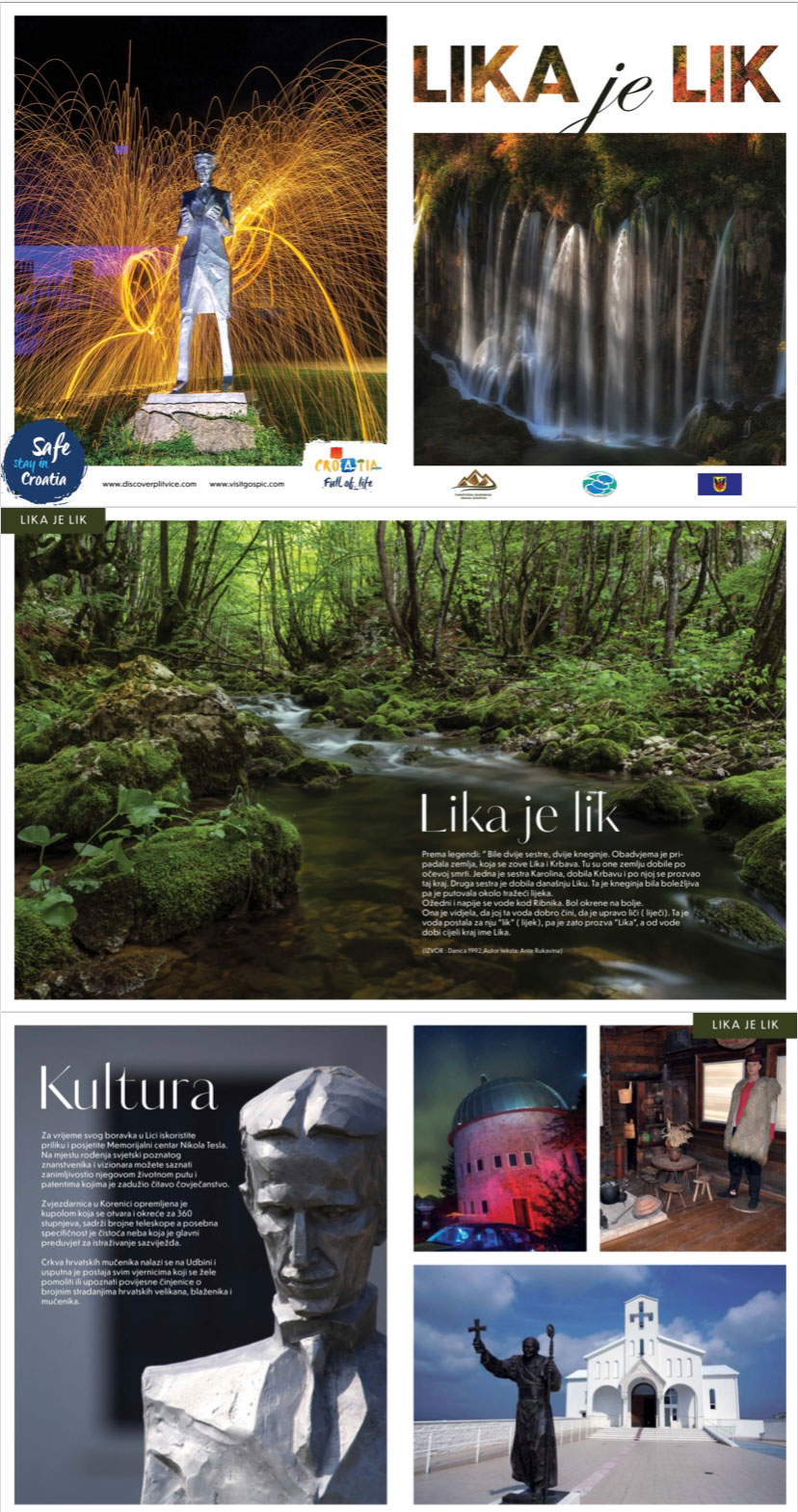 U nastavku suradnje na zajedničkom projektu Lika je Lik Turističke zajednice općine Plitvička jezera, Turističke zajednice grada Gospića i Općine Udbina izdana je i nova image brošura, koja će predstavljati ovu mikroregiju u narednom razdoblju. Svaki dio brošure je pomno osmišljen i dizajniran, opisuje i slikovno prikazuje različite turističke proizvode : kulturu i naslijeđe, prirodno okruženje, gastronomiju, manifestacije…Odradili smo značajan marketinški posao online kampanjama na društvenim mrežama i portalima što se odmah direktno osjetilo u turističkim rezultatima dolazaka i noćenja.