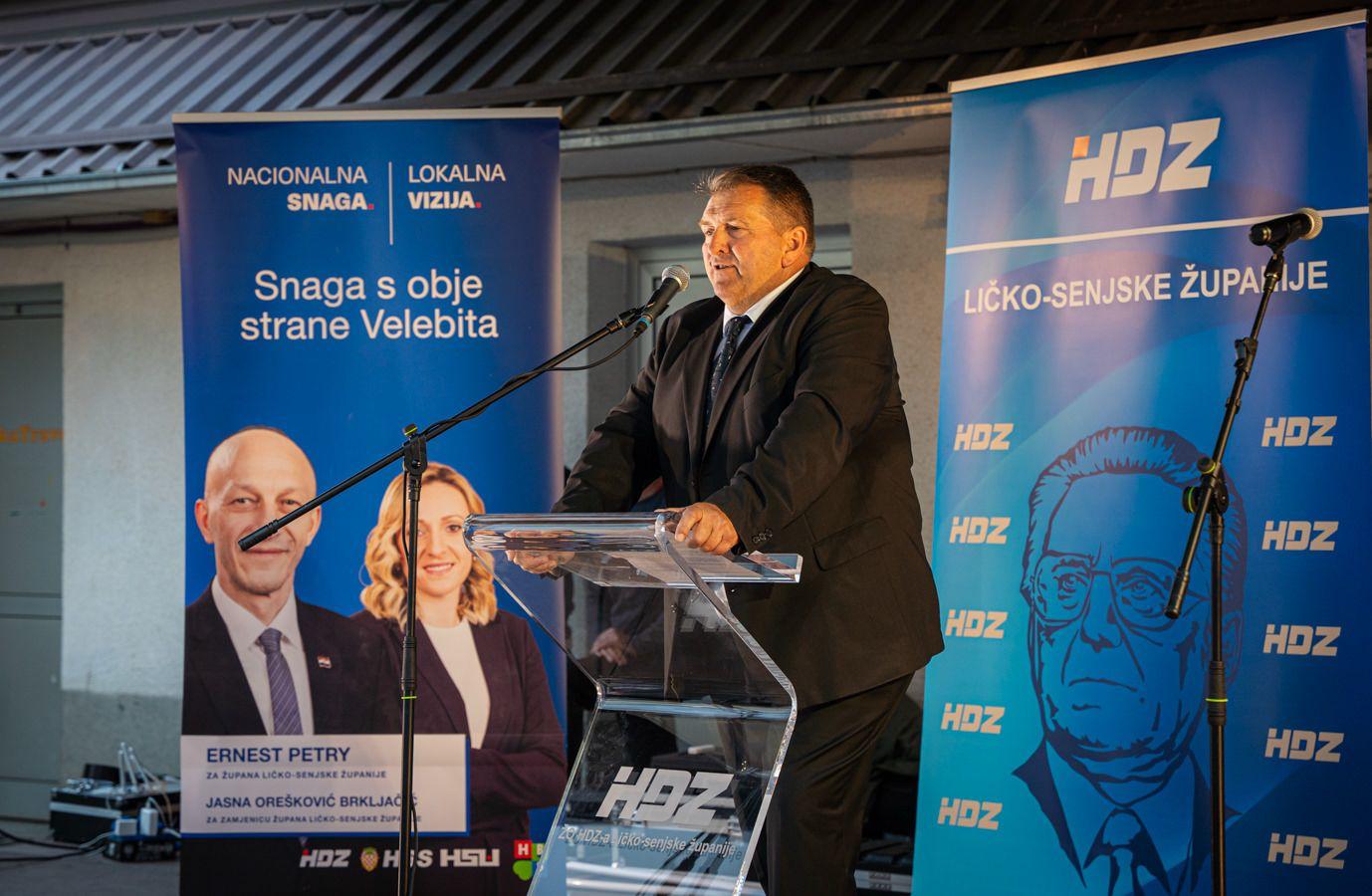 Središnji, emotivan i motivirajući govor večeri održao je ličko-senjski župan Ernest Petry, predsjednik Županijske organizacije HDZ-a i član Predsjedništva stranke. U govoru ispunjenom činjenicama i emocijom, Petry je podsjetio na sve što je u protekle četiri godine napravljeno – od velikih infrastrukturnih zahvata i ulaganja u školstvo, zdravstvo, gospodarstvo i energetsku obnovu, do razvoja svakog dijela županije “s obje strane Velebita”. Istaknuo je da Ličko-senjska županija danas nije prepoznatljiva po praznim obećanjima, nego po konkretnim projektima i rezultatima. Spomenuo je energetske obnove škola, uređenje zgrada javne namjene, infrastrukturne projekte, otvaranje poslovnih zona i dovođenje privatnih investitora koji stvaraju nova radna mjesta. Posebno je izdvojio projekt koji ima duboku simboličku težinu, izgradnju Memorijalnog centra Domovinskog rata u Gospiću. “To je najvažniji projekt, ne samo građevinski, nego civilizacijski. To je naš dug prema hrvatskim braniteljima čije su kosti ispod nas. Taj centar bit će mjesto ponosa, sjećanja, edukacije i zahvale, temelj svega što radimo i zašto radimo,” poručio je Petry.