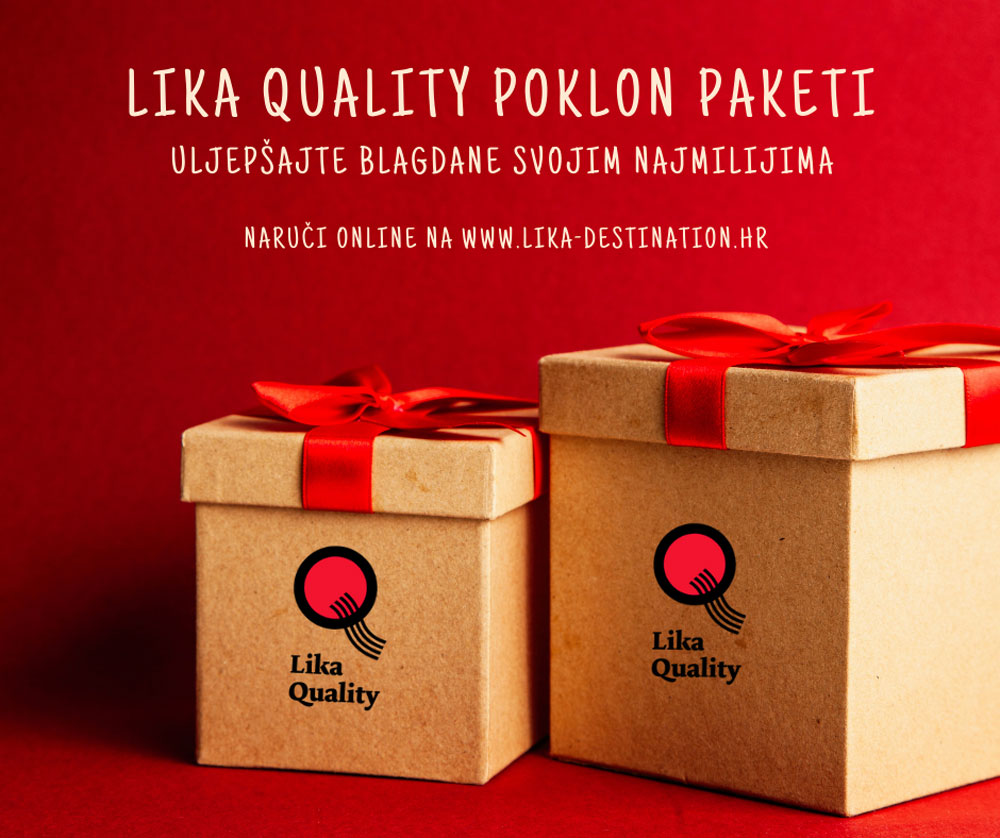 Kako bi omogućili kupcima da uživaju u blagodatima ličkih delicija te kako bi iste mogli prigodno pokloniti za nadolazeće blagdane, Klaster Lika Destination i Poljoprivredna zadruga Lika COOP osmislili su Lika Quality poklon pakete – koje možete naručiti online, na službenoj web stranici Klastera Lika Destination, iz udobnosti vlastitoga doma: https://www.lika-destination.hr/lika-quality-pokloni/ .