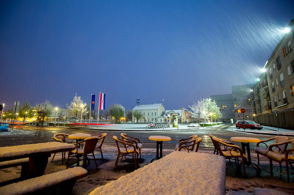 Večeras su u Gospiću u 20 sati službeno izmjerena 3 cm snijega! Snijeg pada i dalje! U centru grada ljetna je terasa prekrivena snijegom. Prema prognozi vremena DHMZ-a snijeg će padat i sutra: