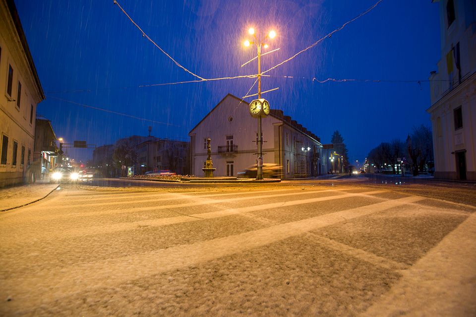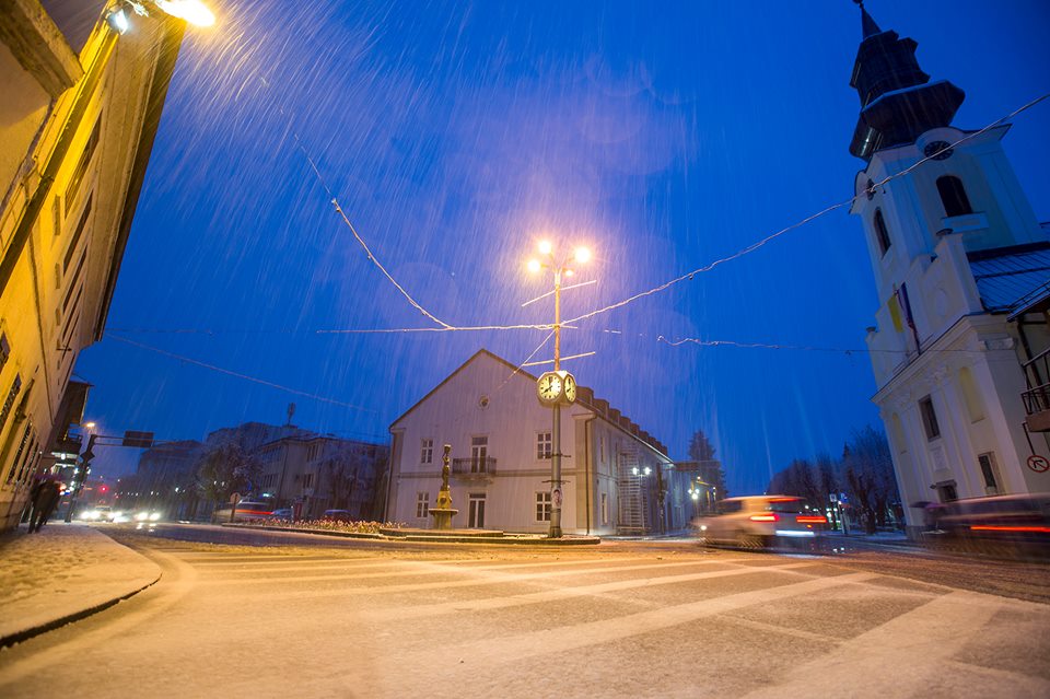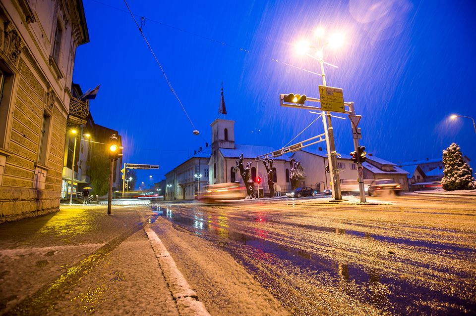 Večeras su u Gospiću u 20 sati službeno izmjerena 3 cm snijega! Snijeg pada i dalje! U centru grada ljetna je terasa prekrivena snijegom. Prema prognozi vremena DHMZ-a snijeg će padat i sutra: