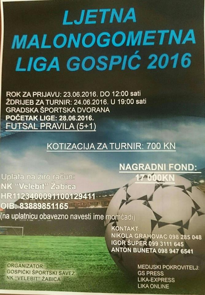 LJETNI MALONOGOMETNI TURNIR ” GOSPIĆ 2016.”