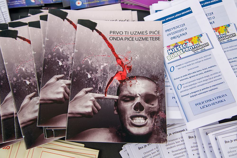 Na štandu ispred zgrade FINA-e u Gospiću građanima su dijeljeni promo-materijalima. Podršku ovoj kampanji dao je župan ličko-senjski Milan Kolić sa suradnicima, zatim načelnik PU ličko-senjske Ante Podnar, zamjenica gradonačelnika grada Gospića Marta Grgurić, predsjednica Županijske komisije za suzbijanje ovisnosti Dubravka Rukavina, vanjski suradnik za prevenciju HZZJZ ličko-senjske županije prof. Viktor Božičević, načelnica Policijske postaje Gospić Višnja Borčić i više policijskih službenika. Droga se na području Ličko-senjske županije se pojavljuje tek povremeno, dok se pojačano evidentira tijekom turističke sezone. Rekao nam je to vanjski suradnik za prevenciju HZZJZ ličko-senjske županije prof. Viktor Božičević. -Unatrag nekoliko godina situacija s ovisnošću na ovim prostorima neznatno mijenja. Pri tom od legalnih i lako dostupnih opijata alkohol je i dalje na prvom mjestu. Riječ je o uvjerenju koje se teško mijenja jer ima uporište u tradiciji. Vjerojatno će umanjivanje ukupne konzumacije alkohola trajati desetljećima jer je nažalost alkohol društveno prihvatljiv. Jedan od načina smanjenja broja alkoholičara je piti umjereno i piti pića s manjim postotkom alkohola, zaključuje prof. Božičević. Druga ovisnost o kojoj se malo govori, ali je znatna jest duhan.