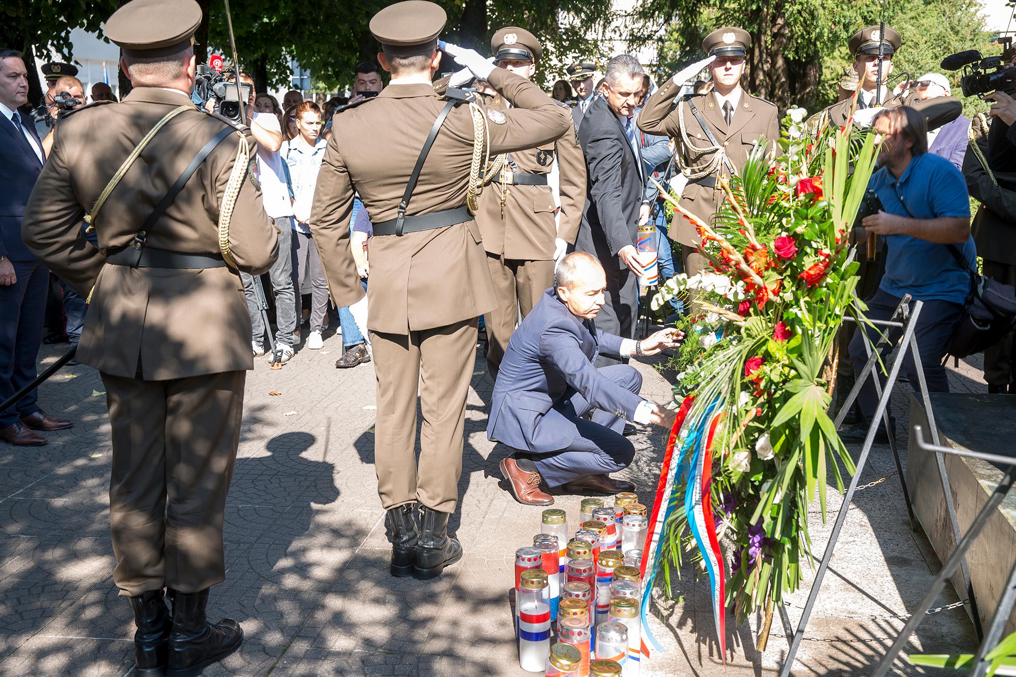 Izaslanik premijera Plenkovića i ministar obrane general Damir Krstičević podsjetio je na visoku cijenu slobode plaćene za Hrvatsku, za njenu neovisnost i bolji život generacija koje dolaze.