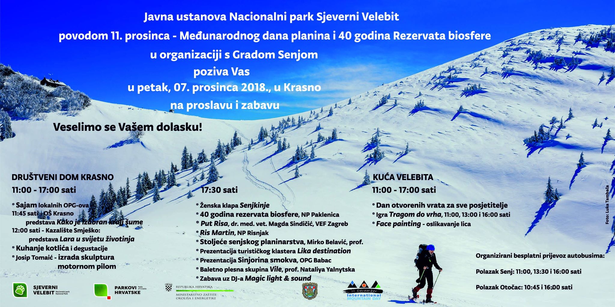 Javna ustanova „Nacionalni park Sjeverni Velebit“ već tradicionalno obilježava ovaj dan te Vas poziva u petak, 07. prosinca 2018. g., od 11:00 sati u dvorani Društvenog doma Krasno na prigodni program i druženje.