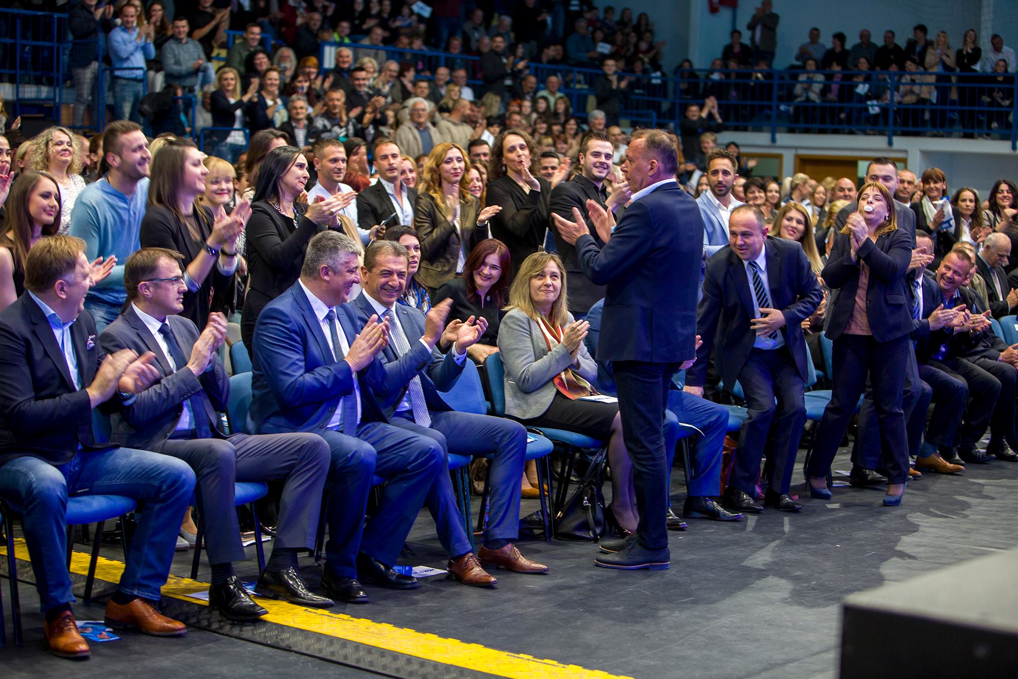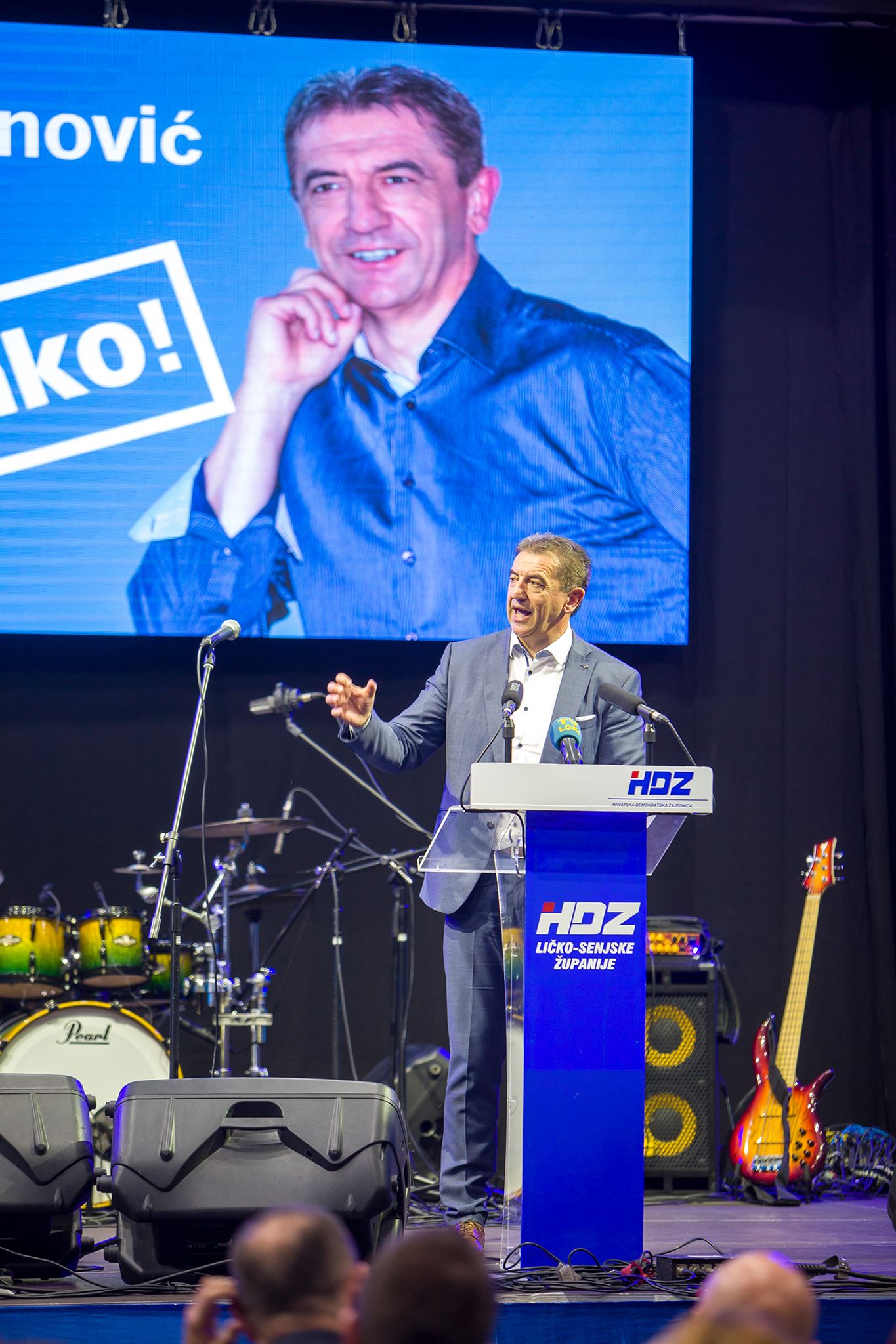 -Nedavno su mi rekli kako sa mnom kao županom neće biti lako. Možda su u pravu jer sam „letvicu“ u radu postavio visoko. Zato ću od svih načelnika i gradonačelnika kao župan zahtjevati maksimum. Svojedobno sam bio u samom državnom vrhu. Naučio sam puno toga i stekao mnoga prijateljstva i poznanstva. Upravo to želim iskoristiti za dobrobit ove županije. U svojem Izbornom stožeru sam zahtjevao da naše političke suparnike nitko ne smije vrijeđati, niti omalovažavati. To je njihova retorika koja im ne služi na čast. Okupio sam mladost, obrazovane mlade ljude u koje vjerujem. Na našim koalicijskim listama ima više žena nego li je to zakon i predvidio. Želimo u praksi još jednom dokazati koliko su mladi i žene važni za ovo društvo. Ovdje su večeras s nama budući načelnici općina i gradonačelnici. Ja ću im biti na raspolaganju 24 sata dnevno, ali isto tako od njih tražiti maksimum jer samo radom zajedništvom možemo graditi našu bolju budućnost, rekao je između ostaloga kandidat za župana dr. Darko Milinović i ispričao se mnogim građanima koji zbog velikog zanimanja za ovaj skup nisu niti uspjeli ući u Sportsku dvoranu.