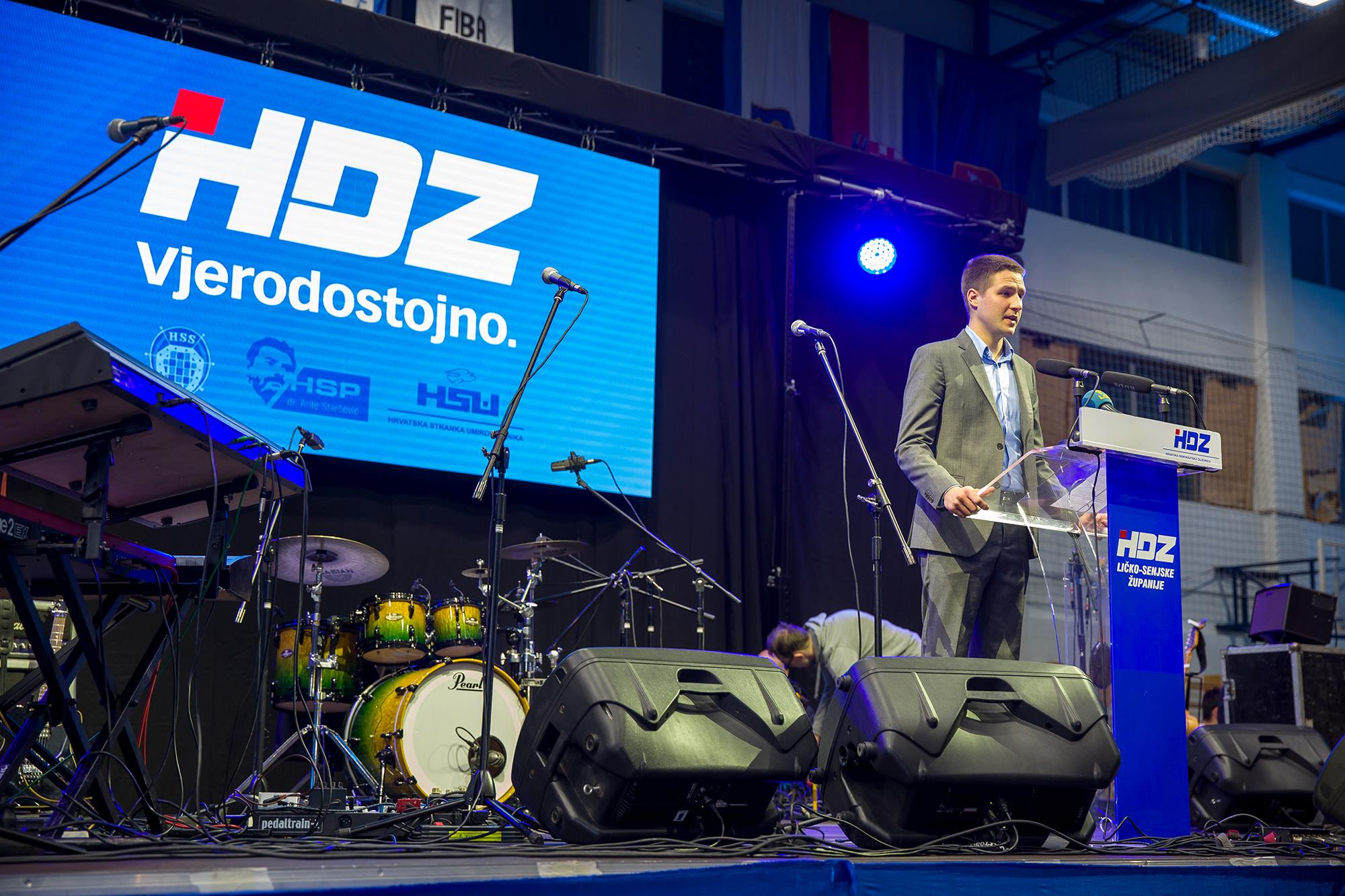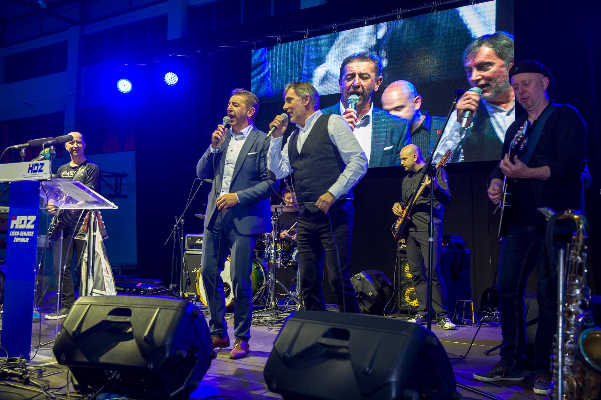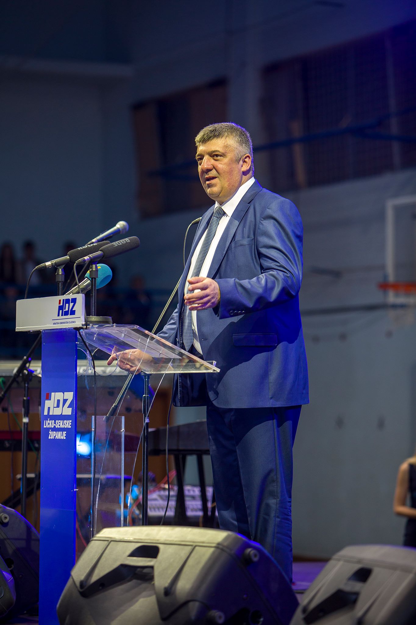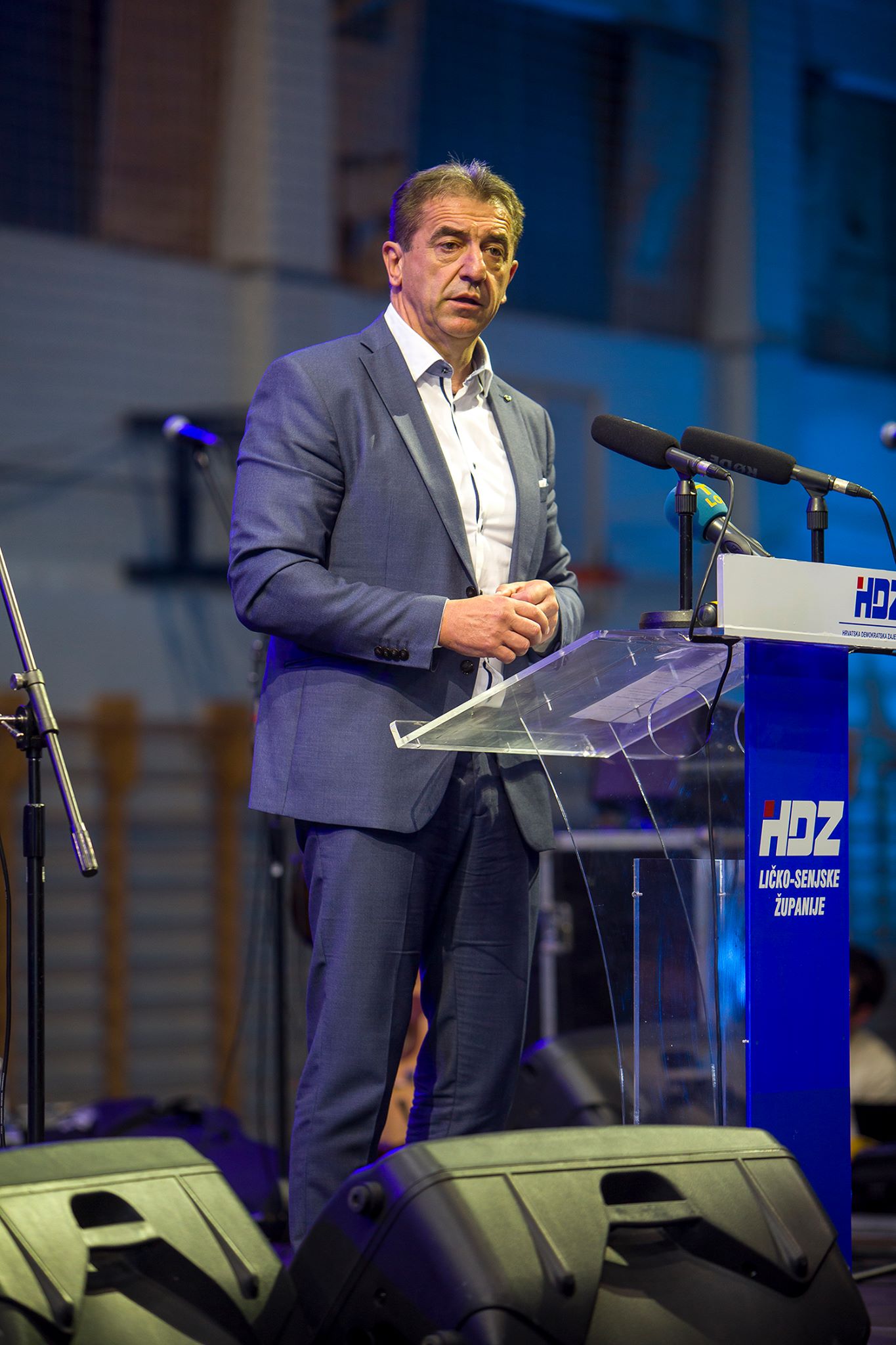 Prvi govornik je bio gradonačelnik Grada Gospića Petar Krmpotić. Praćen pljeskom nazočnih faktografski je naveo brojne realizirane projekte i aktivnosti koje za cilj imaju poboljšanje kvalitete života svih građana. Krmpotić je posebno istaknuo ponos što se Grad Gospić već niz godina nalazi u društvu tek manjeg broja hrvatskih gradova čijem financijskom poslovanju državna revizija uvijek daje bezuvjetne nalaze. Mladi Marko Orešković je govorio u ime svoje generacije. Marko se doselio iz Zagreba u Liku kako bi u svojem zavičaju potražio sreću i izgradio budućnost. Prekidan čestim pljeskom brojne publike Marko je pozvao sve mlade koji su u nedoumici za svoju budućnost da ostanu u Ličko-senjskoj županiji i svojim znanjem i zalaganjem stvore još bolje mjesto za život. O popularnosti Miroslava Škore nije potrebno trošiti vrijeme. Publika napamet zna sve njegove pjesme, što se još jednom potvrdilo tijekom ovoga koncerta. Onda je najavljen kandidat za župana koalicije HDZ-HSS-HSP AS i HSU dr. Darko Milinović i dvorana se digla na noge. Dr. Milinović se u govoru zahvalio sadašnjem županu Milanu Koliću za sve ono što je kao hrvatski branitelj, gradonačelnik i župan učinio za ovaj dio Hrvatske.
