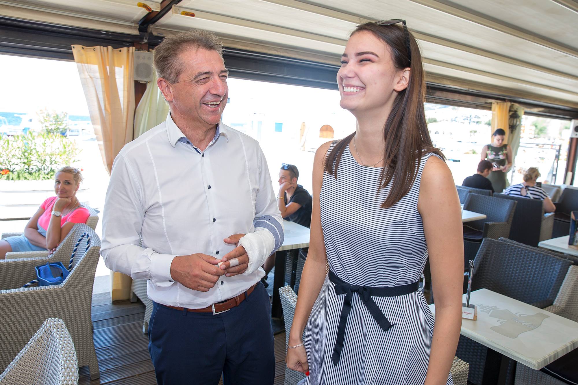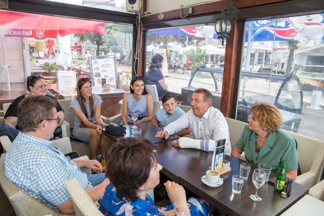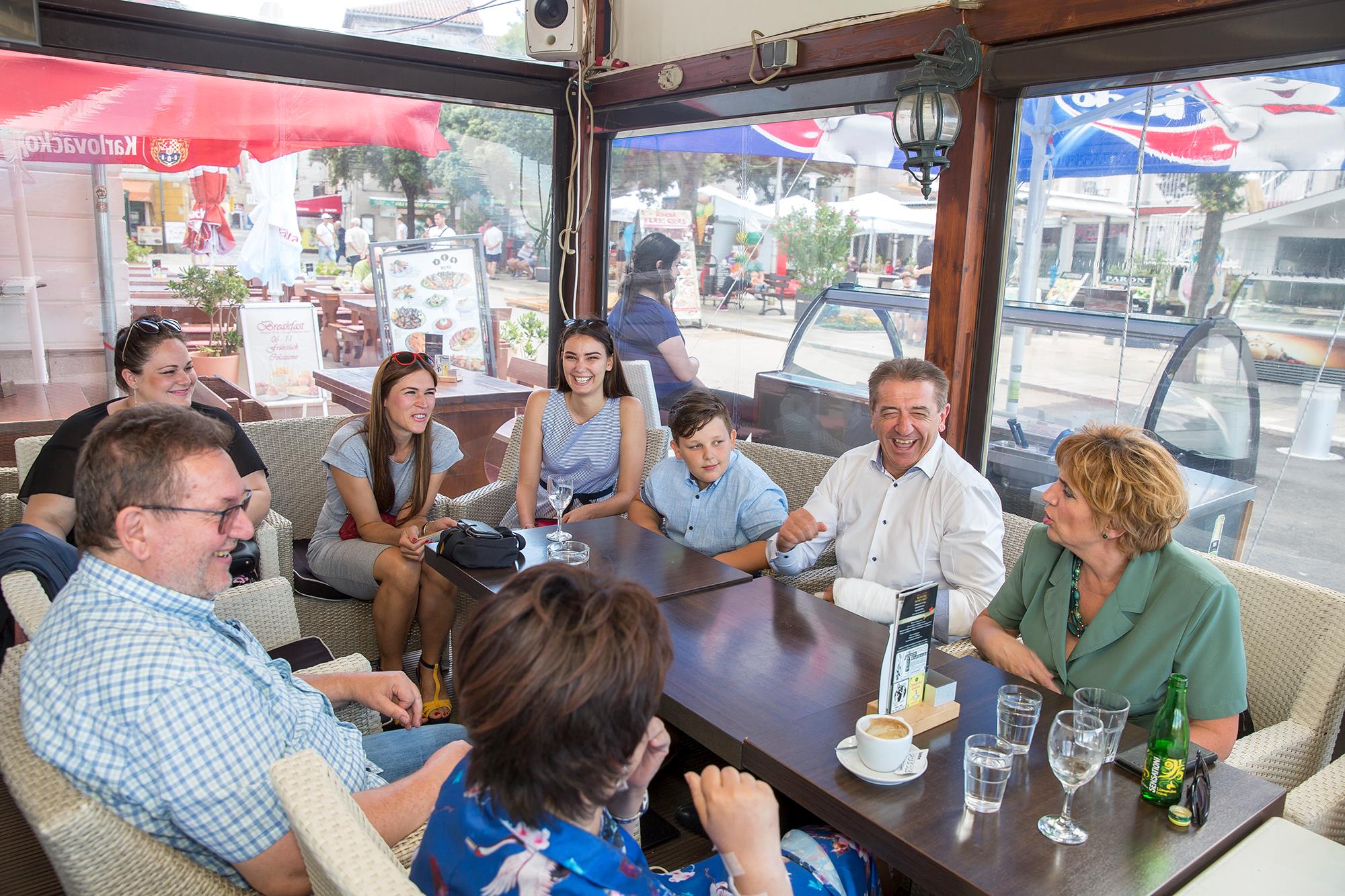 Nakon radnog posjeta Župan Milinović je posjetio popularni kafić Tri mornara gdje se družio sa građanima. Župan je u razgovoru i uz razne šale razgovarao sa popularnim Senjkinjama i malim Pavarottijem. Senjkinjama je obećao da će doći 29.07. na obilježavanje njihove 25. godišnjice rada. Na druženju vidjeli smo i europsku prvakinju u taekwondou, danas poduzetnicu Sandru Šarić Samaržija , a uz župana je bila i najljepša hrvatica Tea Mlinarić koja se zahvalila na svoj potpori koju je imala od strane Župana.