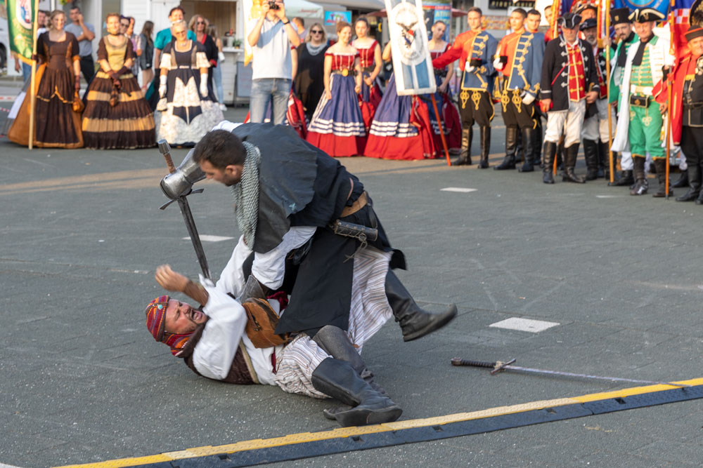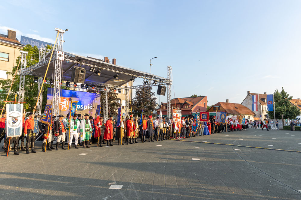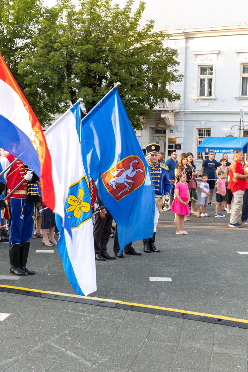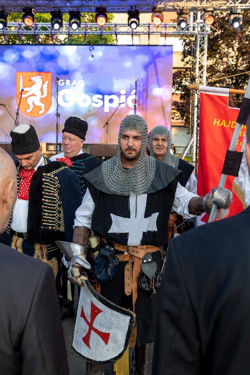 Nakon što su su postrojbe u špaliru postrojile na glavnom trgu župan Ernest Petry i gradonačelnik Grada Gospića primili su prijavak kojega je predao predsjednik Ličke pukovnije Joso Vrkljan. U okupljenom šarenilu teško je bilo izdvojiti neku postrojbu, dok su svojim nastupom drevnu hrvatsku povijest ilustrirali srednjovjekovni vitezovi u borbi s Turcima. Cijeli je program moderirao popularni voditelj Branko Uvodić. Na Trgu Stjepana Radića večeras se očekuje koncert do duboko u noć.