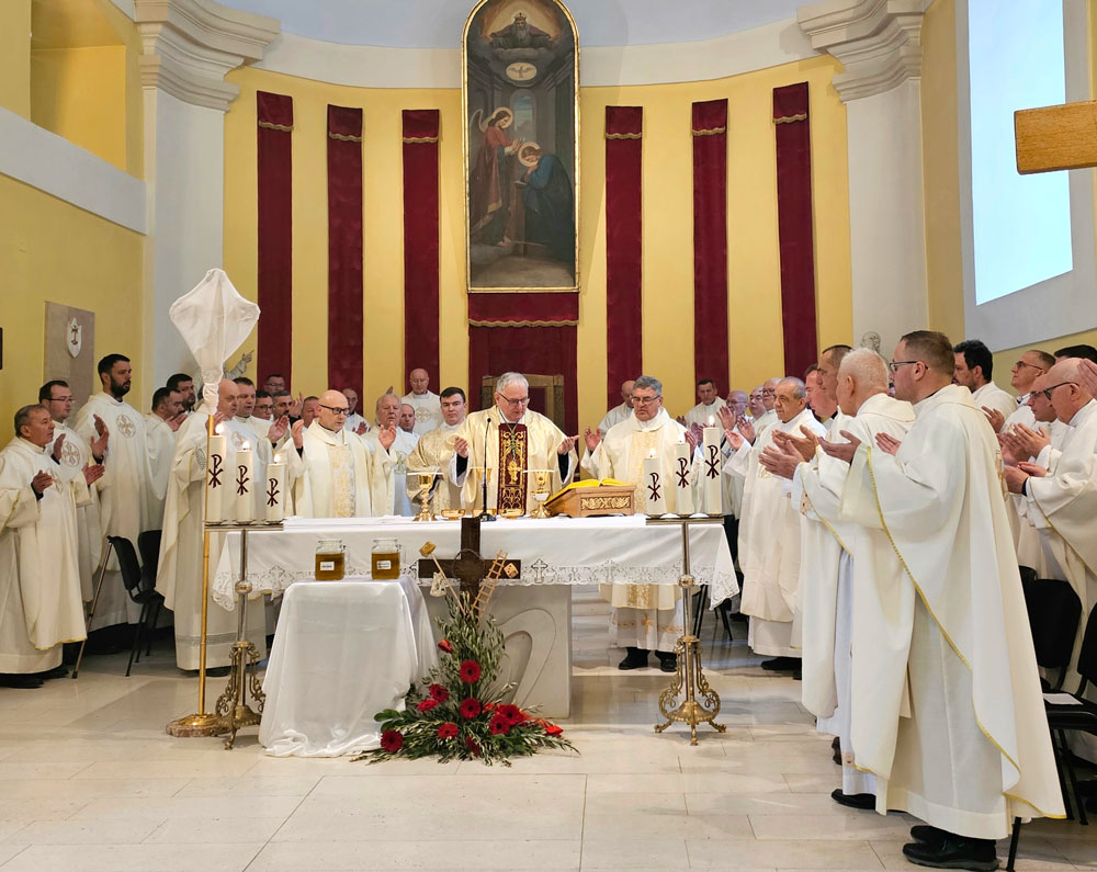 Svećenici su nakon propovijedi obnovili svoja svećenička obećanja. U prinosu darova za euharistiju, svećenici i predstavnici župa prinjeli su i darove prikupljene u akciji „Misereor“ za potrebe mjesne Crkve.Biskup Rogić pod misnim slavljem posvetio ulje krizme i blagoslovio ulje za bolesničko pomazanje.