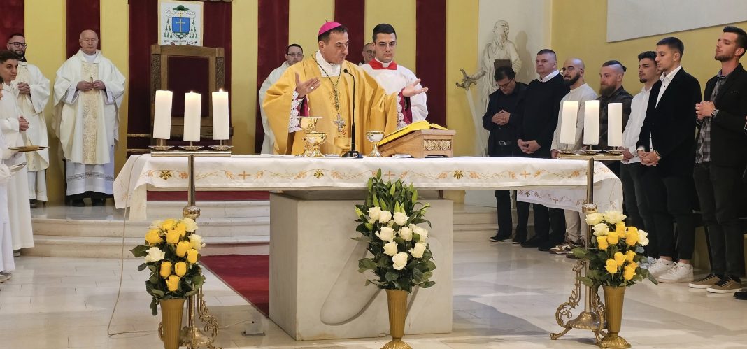 U svojoj homiliji biskup Medo je rekao: „I mi se osjećamo nedostojni pred ovim danom. Ovo je dan koji nas nadilazi! Pa ipak shvaćamo da bi život bio besmislen bez Velikog četvrtka, život bi bio stravično hladan bez topline ovoga dana. U životu nema nade izvan Krista! Pogledajte svijet! Pogledajte plodove njegovih osvajanja: blagostanje stvara nasilje, komoditet samoubojstva, slobodno vrijeme nervozu, govore o miru a proizvode oružje i rat. Svijet je ukorijenjen u zloći! Ako ikada, onda je danas potrebna upravo ova dimenzija Božje ljubavi, danas, kad živimo u svijetu koji je pomahnitao za veličinom, za slavom, za bogatstvom, za uspjehom; danas, kad nam se čini da zlo uzima maha sve do sotonskih dimenzija. Isusova ljubav nas uči da ljubav prema sebi je ukradena ljubav. Bila je namijenjena drugima a ja sam od nje odustao. Zbog toga se vraćamo Posljednjoj večeri žeđajući poput čovjeka u pustinji, umorni kao onaj koji se vraća s dugog puta, razočarani poput onoga koji je otkrio laži tolikih očaravajućih obmana. Da, sve nas to razočarava, ali ne i Bog. I razočaranost svime nas gura k Bogu, dovodi nas Kristu. Krist nam daje smisao života: ’Isus je znao da je došao njegov čas da prijeđe s ovoga svijeta Ocu’. Život je hod kroz svakodnevne duge dane prema svečanoj nedjelji koja neće nikada završiti“ istaknuo je biskup.