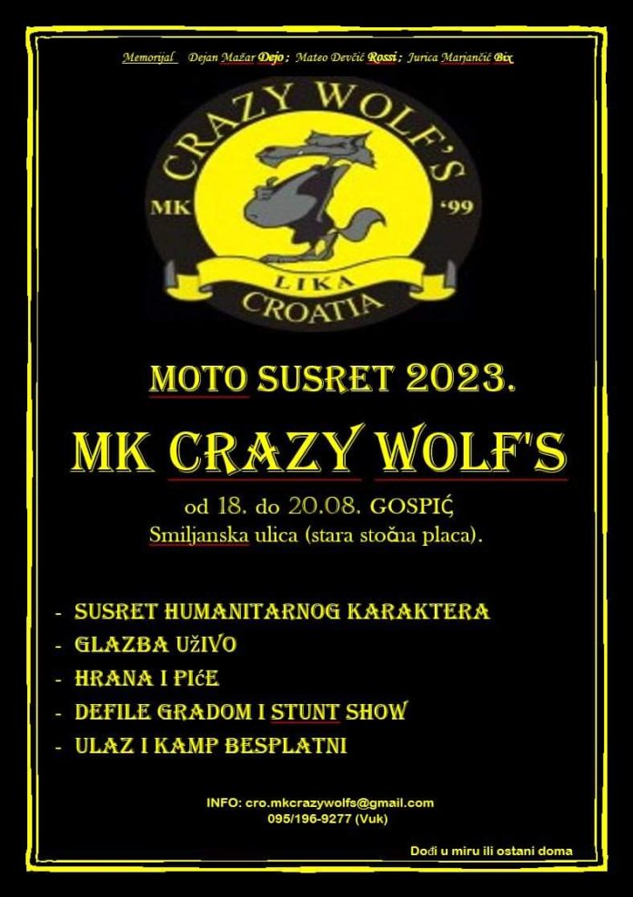 Home Gospić MK Crazy Wolf`s moto susret 2023. GospićvijestiZanimljivosti MK Crazy Wolf`s moto susret 2023. By Nikola Mraović - 18 kolovoza, 2023 0 Facebook Gs Press RELATED ARTICLESMORE FROM AUTHOR Odgovor saborskog zastupnika Zvonimira Troskota gradonačelniku Gospića Darku Milinoviću Otkrivene lokacije na kojima se ove godine vozi svjetski spektakl WRC Croatia Rally Demantij Milinovića: „Gospodine Troskot pločice u ramenu je lako mijenjati, ali opasne su one u glavi“