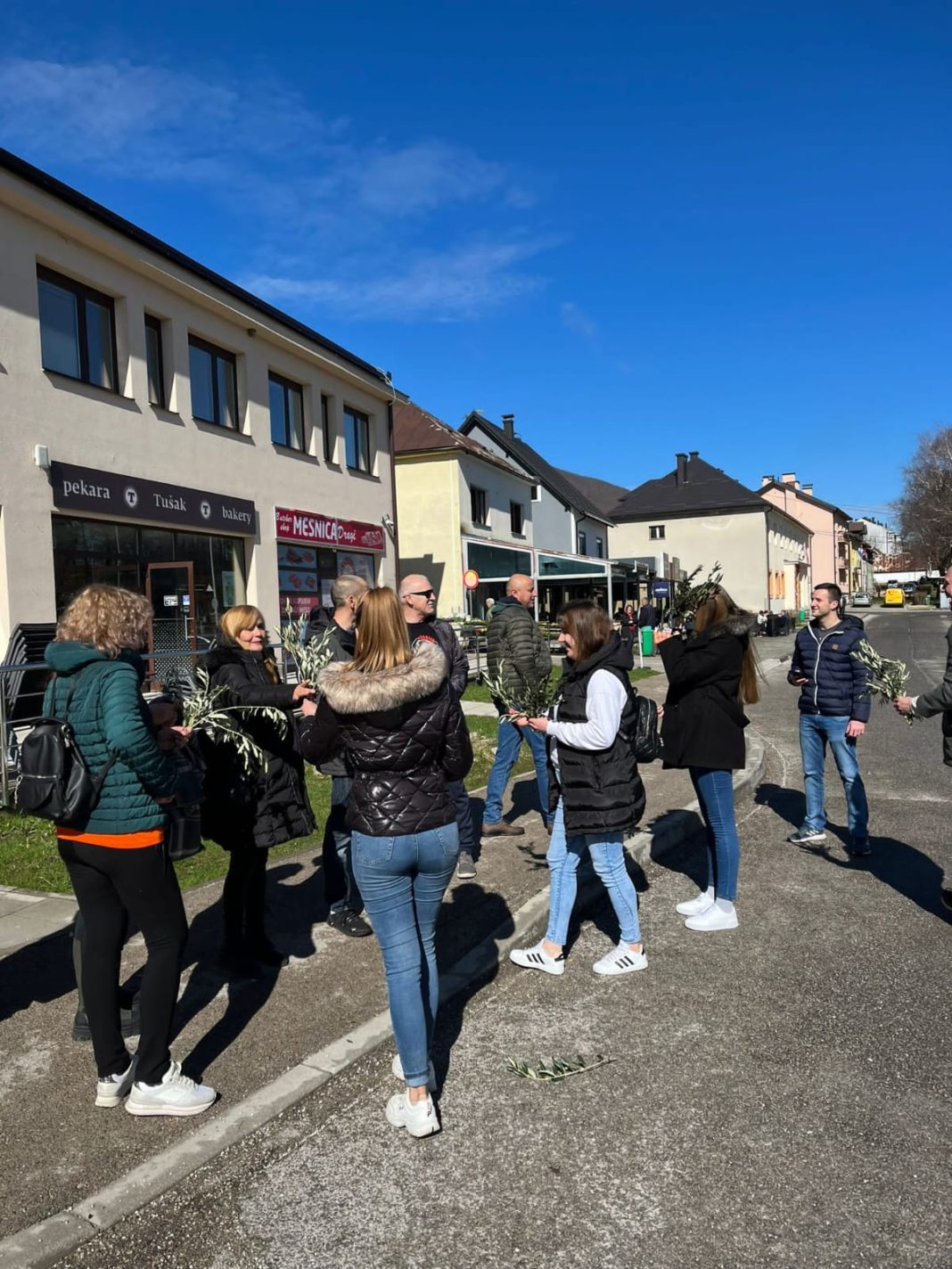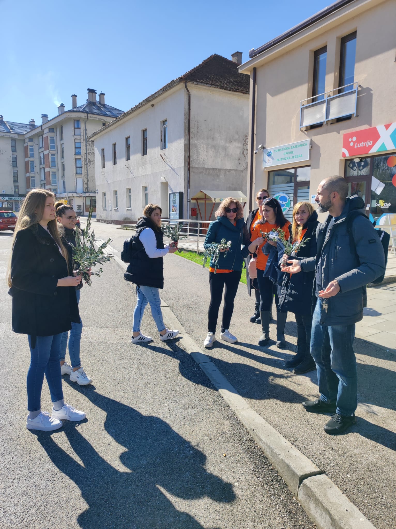 Uoči Cvjetne nedjelje koja prethodi Velikom tjednu prije Uskrsa, mladež Hrvatske demokratske zajednice Plitvička Jezera prigodno je dijelila maslinove grančice u Korenici.