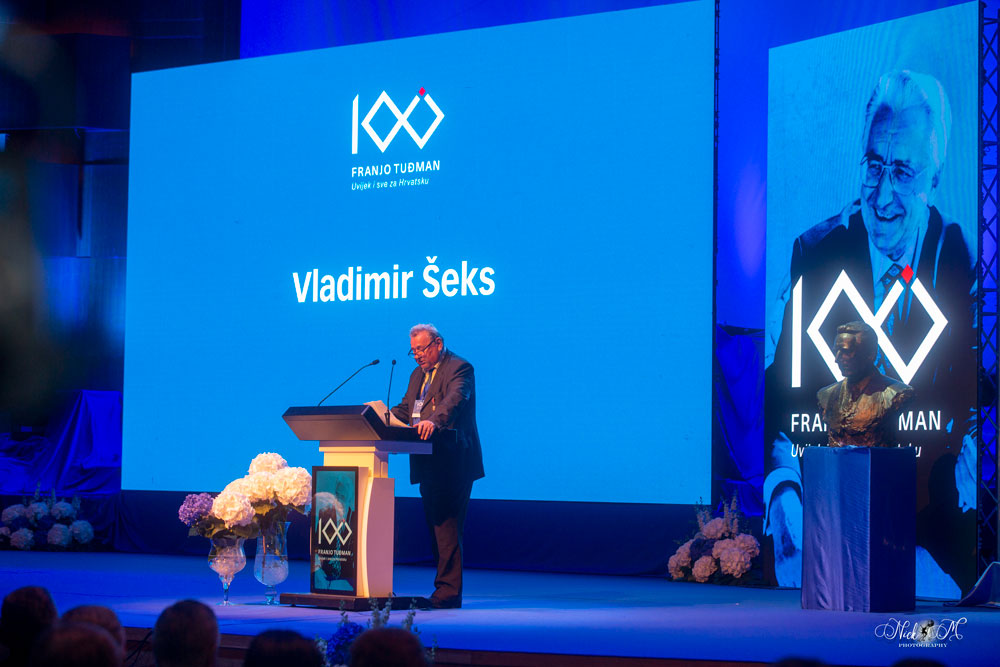 Predsjednik Savjetodavnog vijeća HDZ-a Vladimir Šeks u svom je govoru rekao kako je 100. obljetnica rođenja čovjeka koji je utemeljio suvremenu hrvatsku državu veliki dan, i to ne samo za one koji su mu bili bliski, nego i za cijeli hrvatski narod.