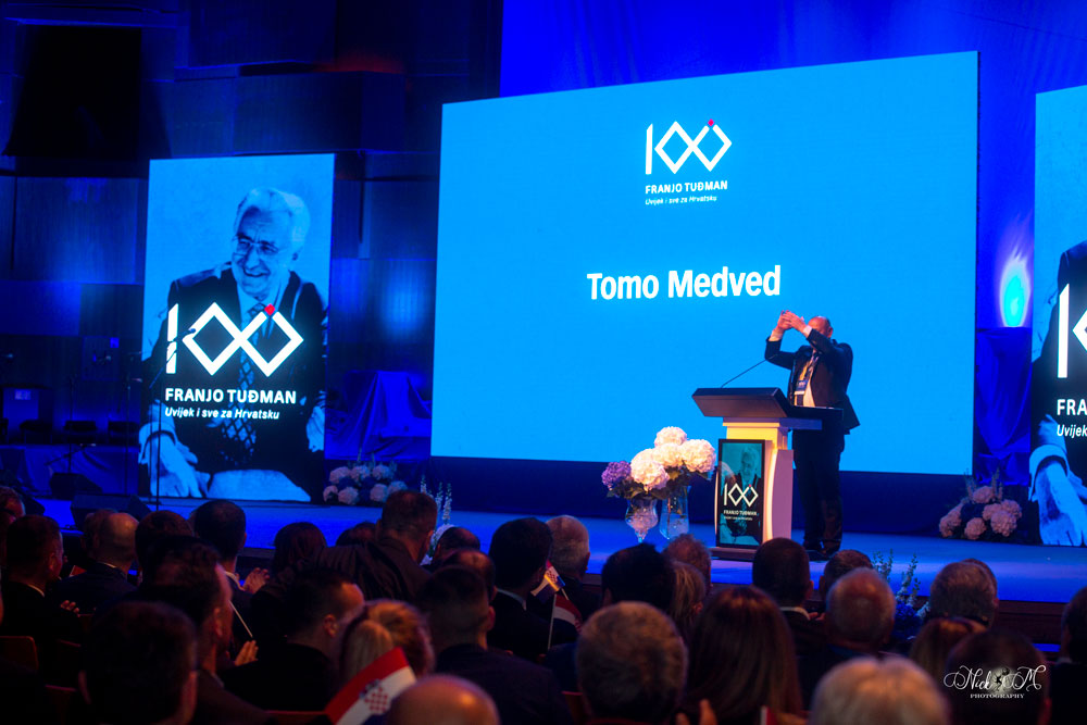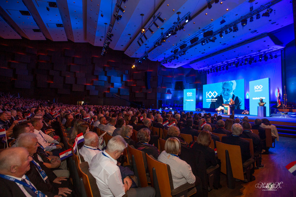 U prepunoj Koncertnoj dvorani Vatroslav Lisinski u subotu navečer Hrvatska demokratska zajednica održala je svečani skup u povodu 100. obljetnice rođenja prvog hrvatskog predsjednika dr. Franja Tuđmana. -piše portal dulist.hr