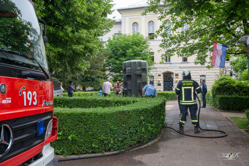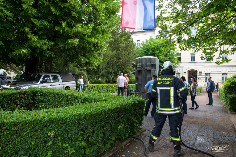 U 10:00 sati ispred zgrade Općinskog suda u Gospiću nepoznata muška osoba se polila benzinom i zaprijetila da će se zapaliti.