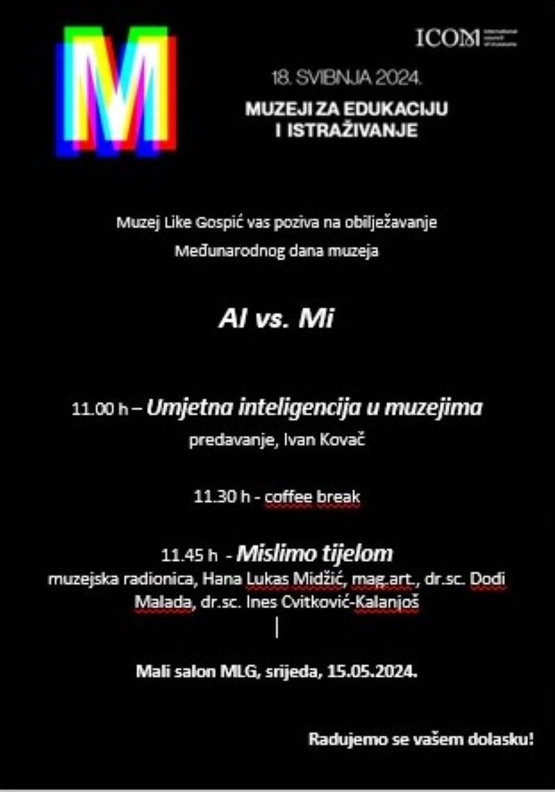S početkom u 11 sati, Ivan Kovač održat će predavanje na temu „Umjetna inteligencija u muzejima“. Predavanje će istražiti kako se umjetna inteligencija koristi u modernim muzejima za poboljšanje iskustva posjetitelja i efikasnije upravljanje zbirkom.