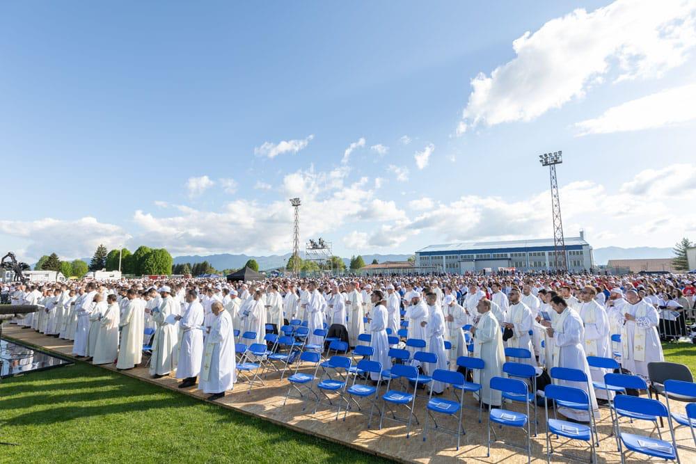 Susretu je prisustvovao apostolski nuncij u Republici Hrvatskoj nadbiskup Giorgio Lingua, zagrebački nadbiskup mons. dr. Dražen Kutleša, brojni biskupi i predstavnici svećenstva, kao i mladež iz cijele Republike Hrvatske.