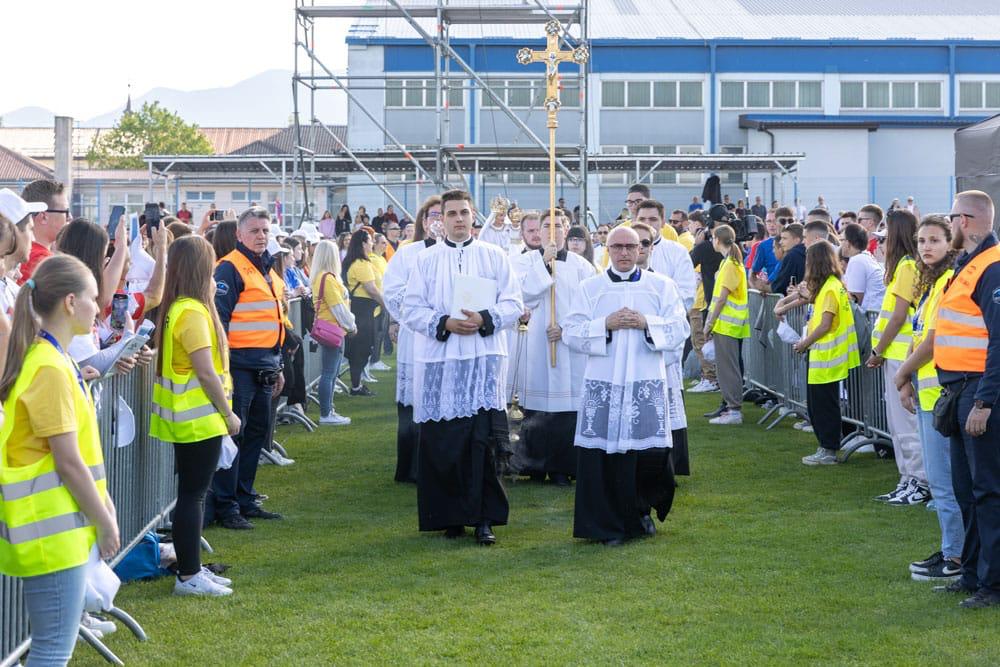 Nakon okupljanja na Trgu Stjepana Radića u Gospiću formirana je procesija prema stadionu Balinovac gdje je održana sveta misa koju je predvodio splitsko-makarski nadbiskup i donedavni biskup gospićko-senjske biskupije mons. Zdenko Križić, dok je propovijed održao šibenski biskup i predsjednik Odbora za mlade HBK mons. Tomislav Rogić.