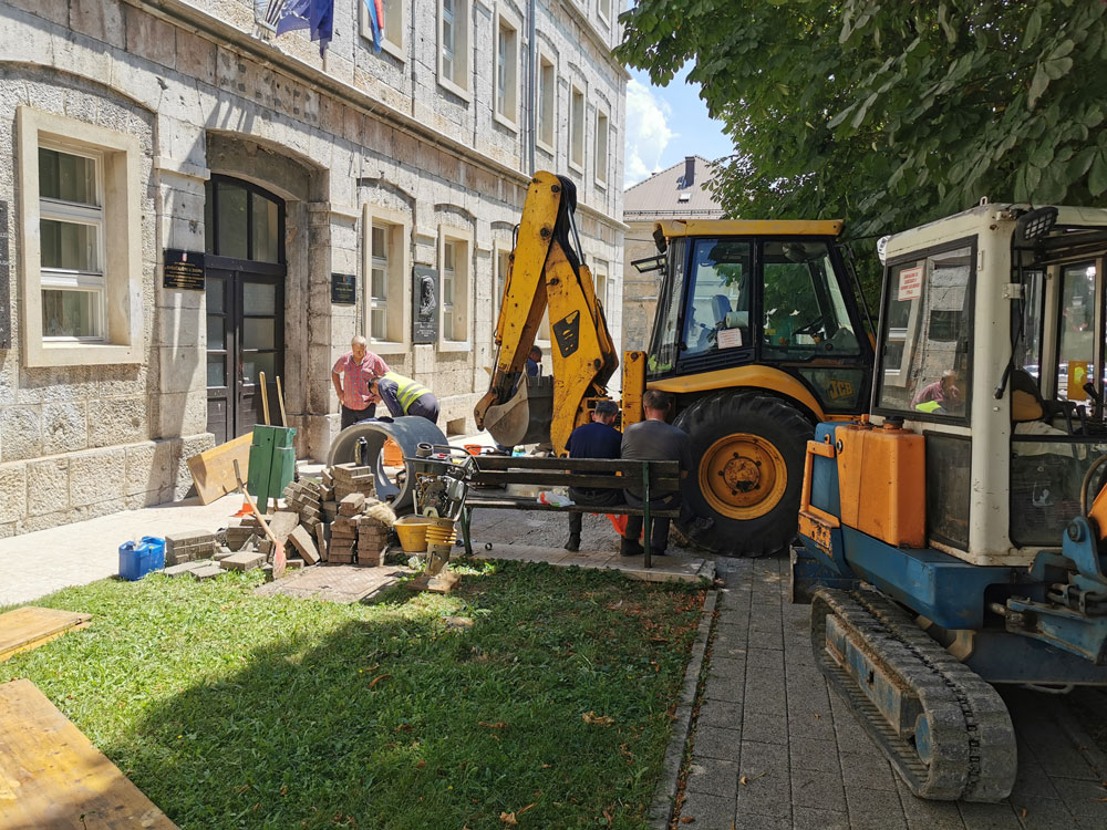 Upržilo je Sunce, hlad je najtraženije mjesto po „kapom nebeskom“. Istodobno poslovi na infrastrukturi ne mogu čekati. Danas su na red došli dijelovi vodovodnog/kanalizacijskog sustava. Grade se kod zgrade Učiteljskog fakulteta. To je svakako povijesno mjesto jer su tu u školu išli Nikola Tesla i naš gradonačelnik.