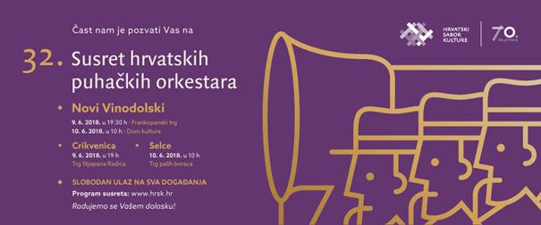 32. Susret hrvatskih puhačkih orkestara središnja je manifestacija puhačkog amaterizma u Republici Hrvatskoj koja će tijekom vikenda 9. i 10. lipnja 2018. godine u Novom Vinodolskom, Crikvenici i Selcu okupiti najuspješnije puhačke orkestre iz cijele Hrvatske.