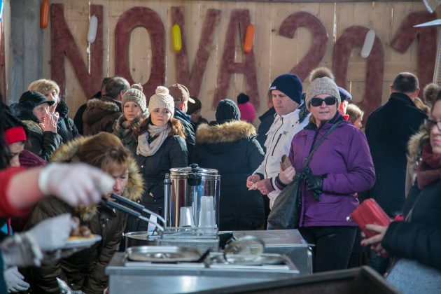 Po prvi puta doček Nove godine u podne priređen je u krugu Rekreacijskog centra na Baškim Oštarijama. Budući je Planinska kuća bila pretijesna za veliki broj okupljenih, happening se dogodio ispred nje. Više od 300 posjetitelja uživali su u glazbi koju je birao DJ Heć, a nakon njega u etno-ritmu dominirali su članovi TS „Velebit“. U dobrom raspoloženju i bez „ozbiljnih lica“ protekla je zabava kakva se ovdje ne pamti. Odbrojavanje posljednjih sekundi stare i umorne 2016., uz najbolje želje da 2017. bude barem malo bolje, pripala je županu ličko-senjskom Milanu Koliću i zamjeniku načelnika Općina Karlobag Borisu Smojveru. U mnoštvu je bio i načelnik Općine Karlobag Ivan Tomljenović Mima. Našlo se danas vremena i za još jednu milenijsku, zajedničku fotografiju okupljenog mnoštva. Kuhano vino i sve ostala pića „tekli su potocima“, uz birane delicije vrsnih majstora i majstorica kuhinje. Kupnjom posebne šalice sa logom RC Baške Oštarije u iznosu od 30 kn moglo se u neograničenim količinma konzumirati kuhano vino, piće toliko prepoznatljivo u planinskim područjima Like.