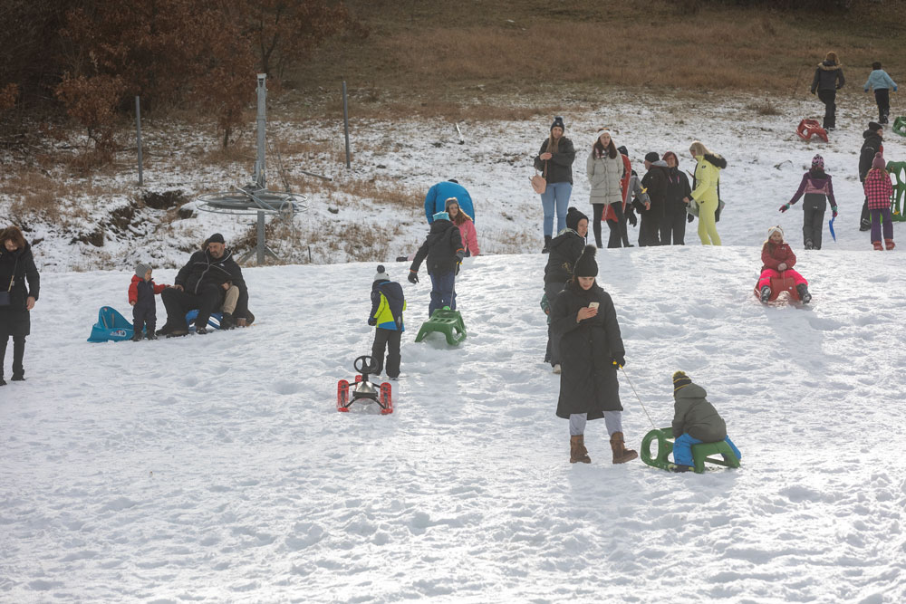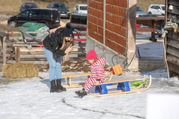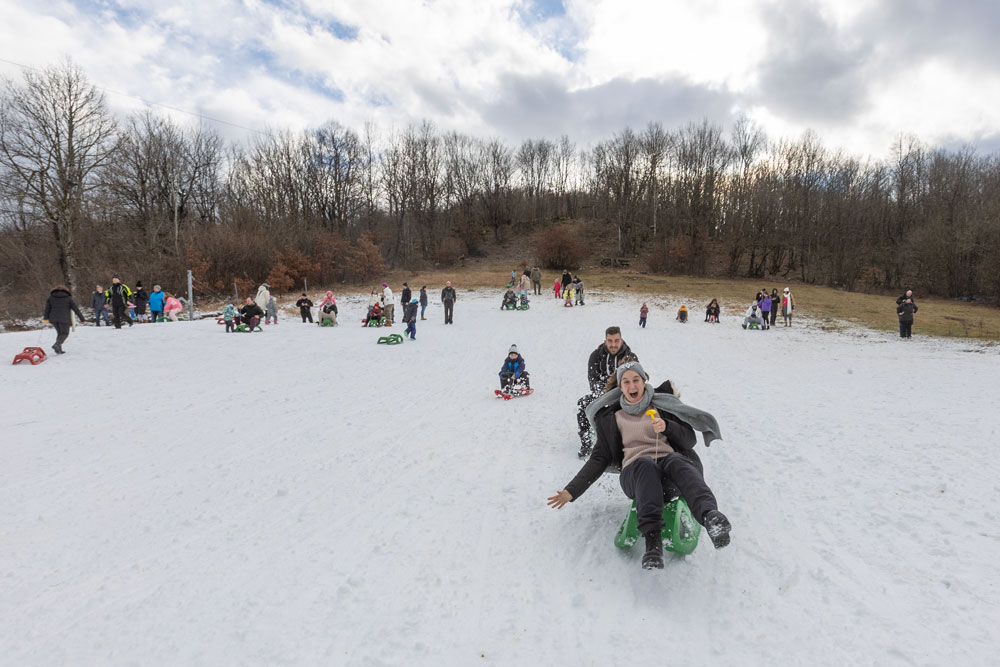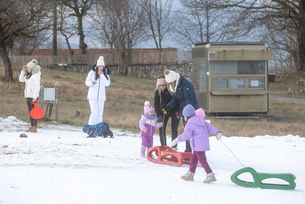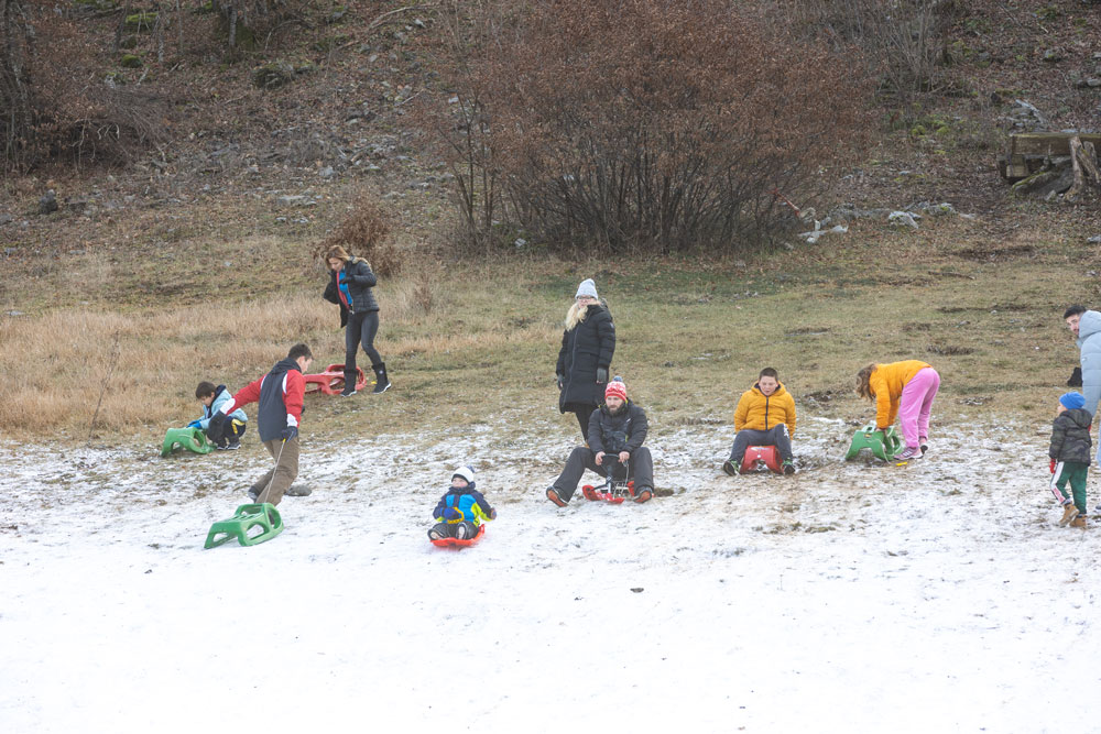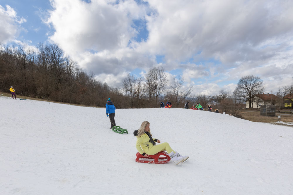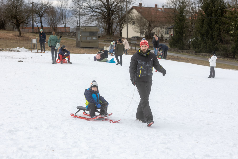Po dolasku u Lovinac primjetno je odmah da nema snijega kao u okolica Gospića. Ipak kod sanjkališta “Cvituša” snijega je dovoljno za sanjkanje!