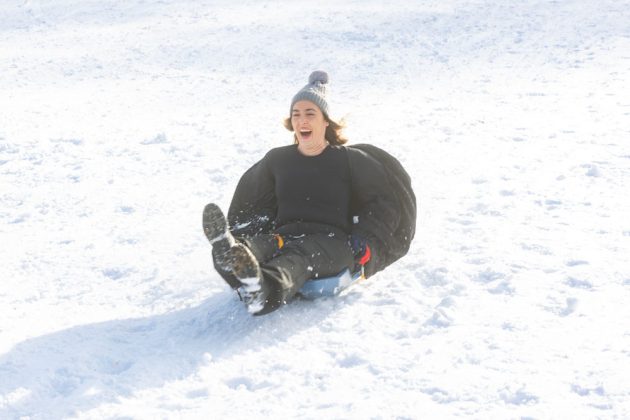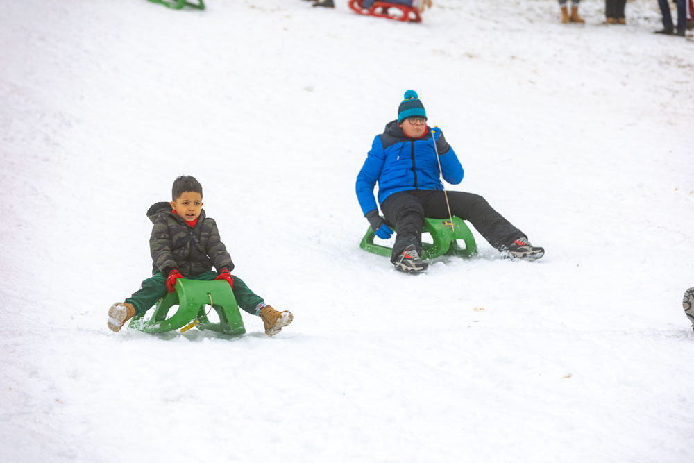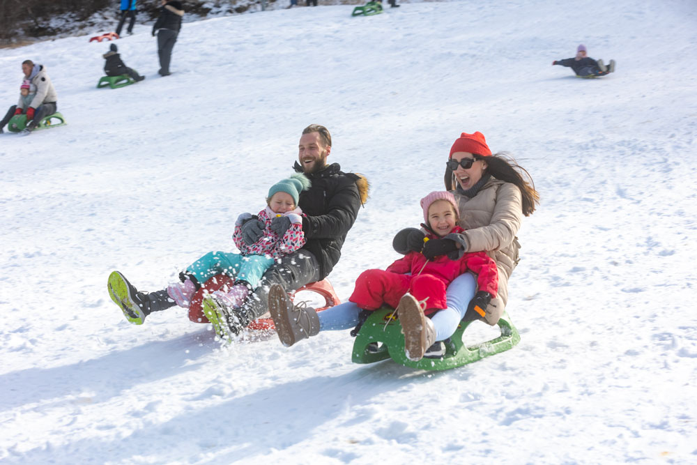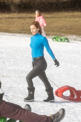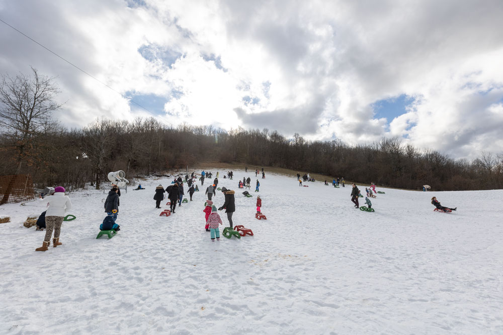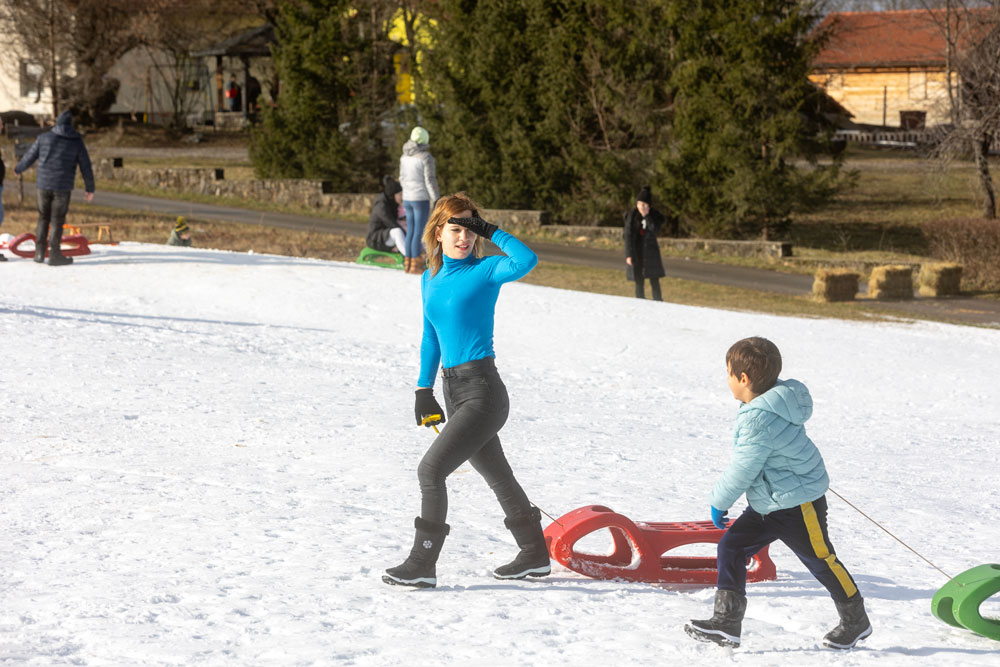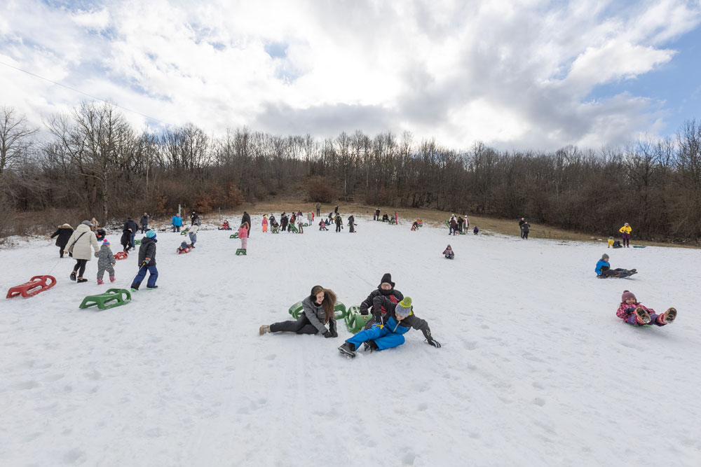 Po dolasku u Lovinac primjetno je odmah da nema snijega kao u okolica Gospića. Ipak kod sanjkališta “Cvituša” snijega je dovoljno za sanjkanje!
