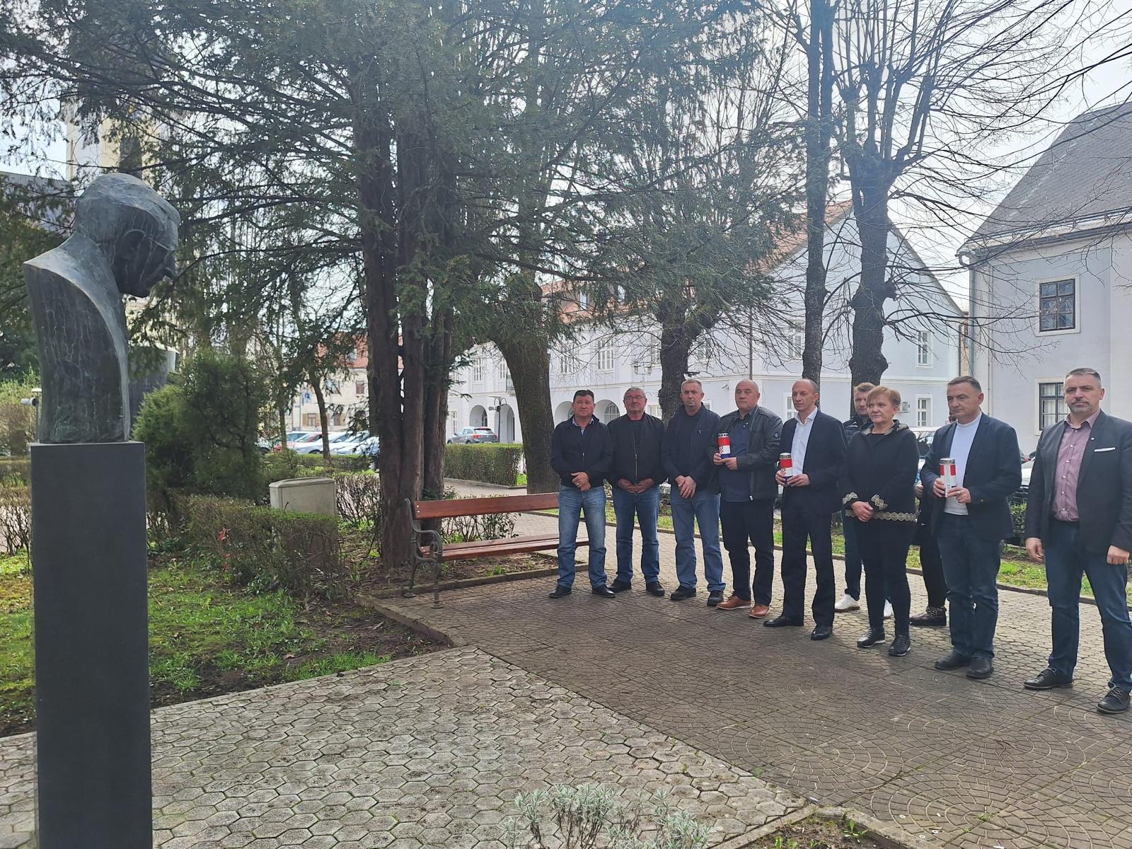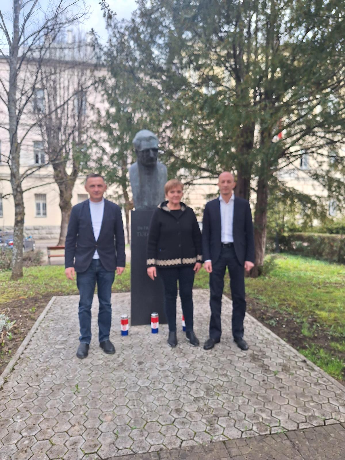 Nakon Perušića, utemeljitelji i članovi HDZ-a odali su počast prvom hrvatskom predsjedniku, zapalivši svijeće podno biste “Dr. Franje Tuđmana” u središtu Gospića, kojim prigodom se nazočnima pridružio i predsjednik Županijske organizacije HDZ-a Ernest Petry.