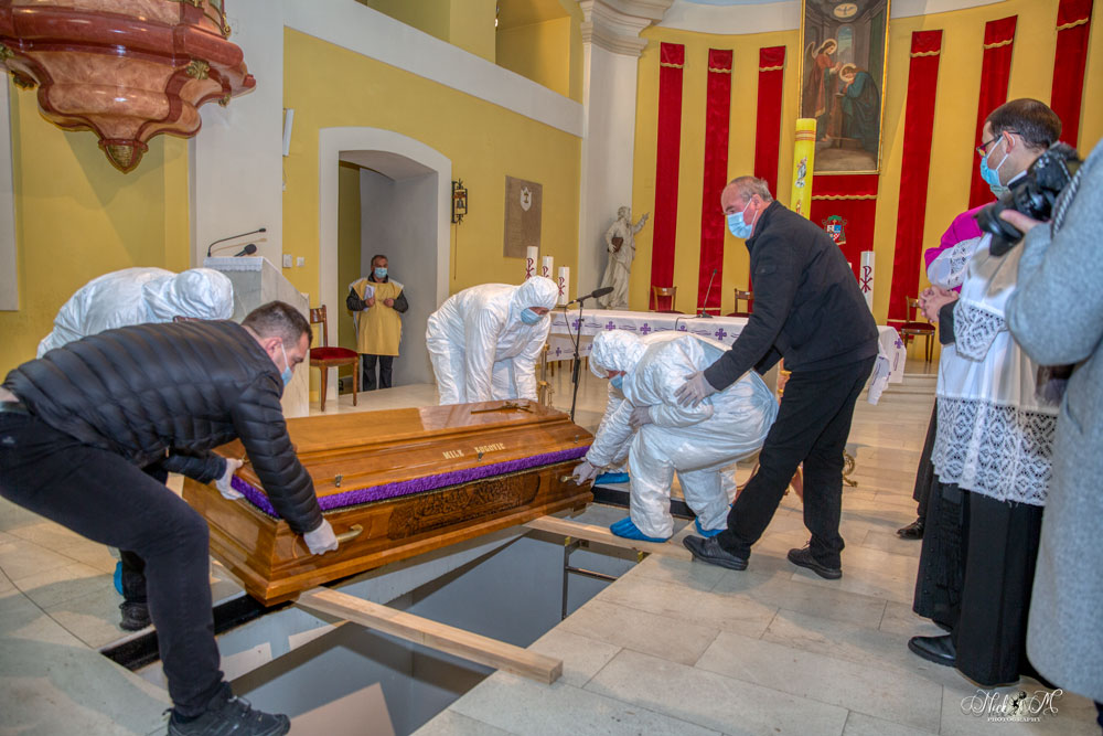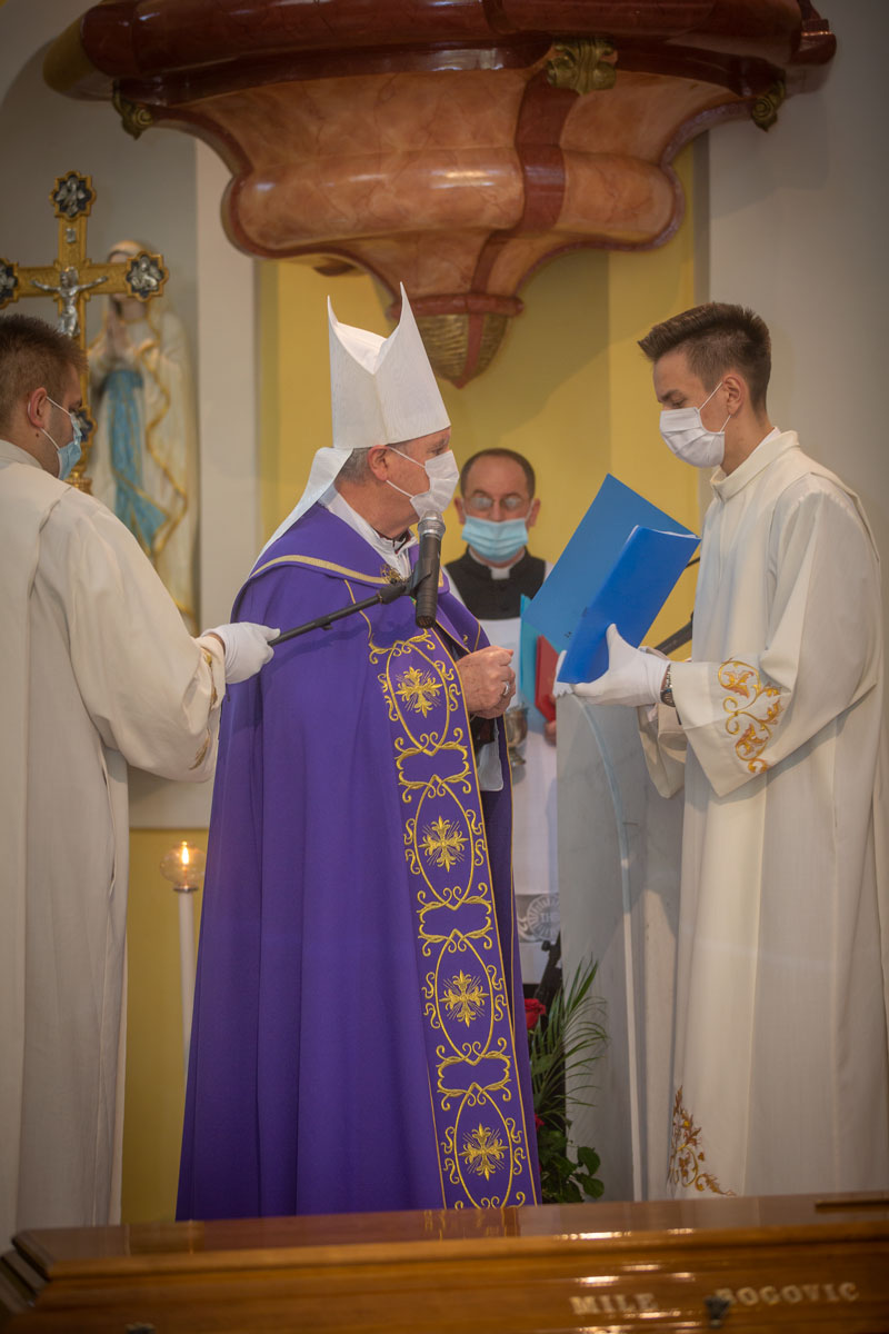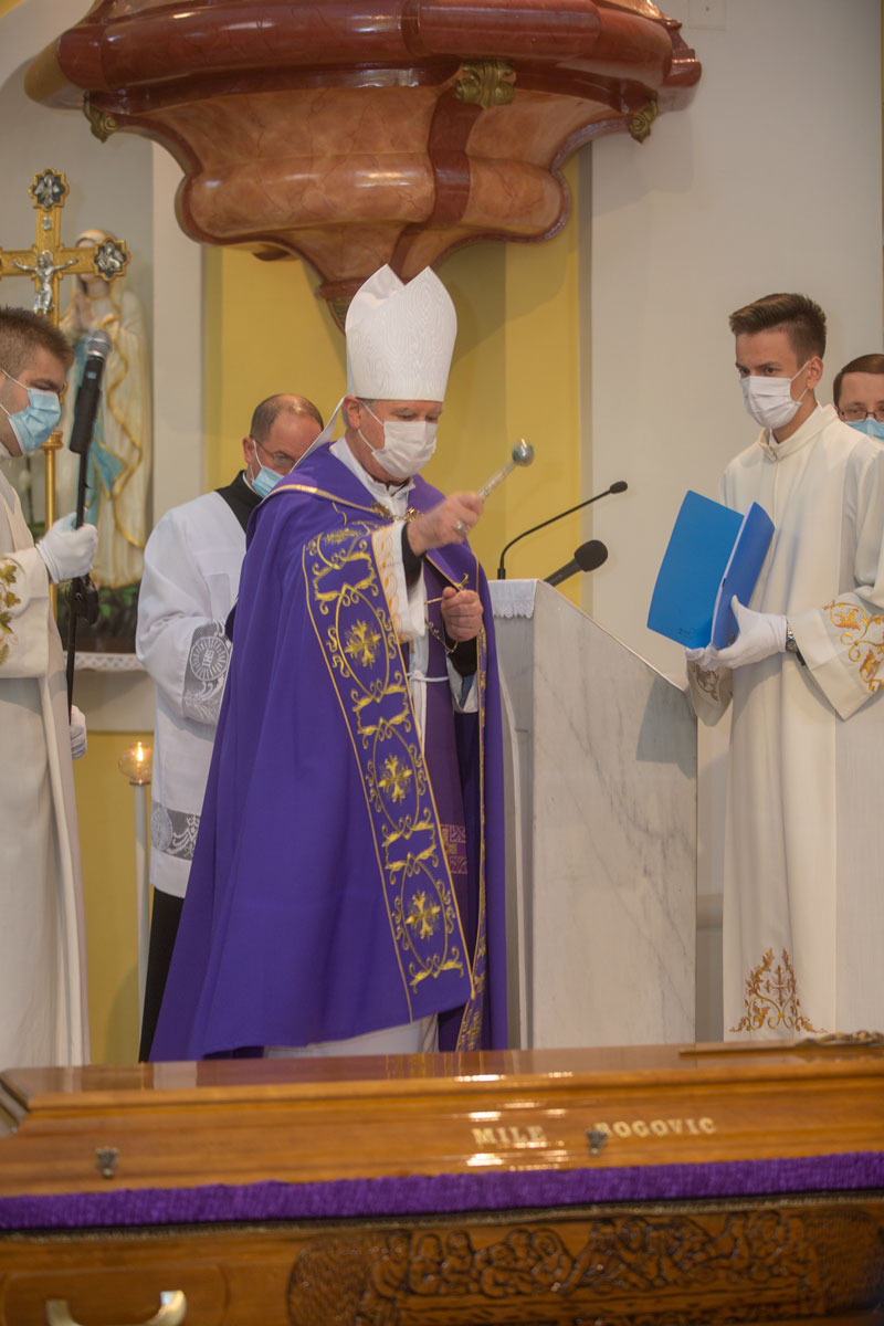 U gospićkoj katedrali Navještenja blažene djevice Marije na posljednji počinak ispraćen je biskup u miru mons. dr. Mile Bogović. Zbog epidemioloških razloga Biskupijski ordinarijat je ranije pozvao vjernike i štovatelje preminulog biskupa dr. Bogovića  da pogrebni obred prate putem facebooka. U katedralu su ušli članovi obitelji Bogović, nekolicine svećenika koji su s preminulim biskupom usko surađivali, dok je od predstavnika jedinica lokalne samouprave na sahrani nazočio samo župan Ličko-senjske županije  dr. Darko Milinović i  gradonačelnik Grada Gospića Karlo Starčević.