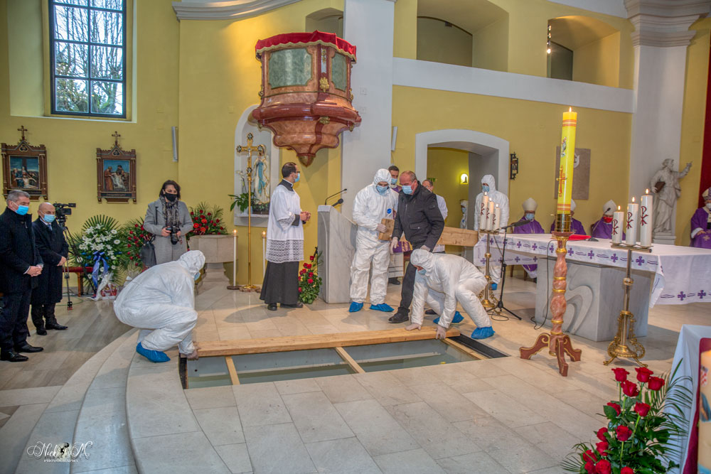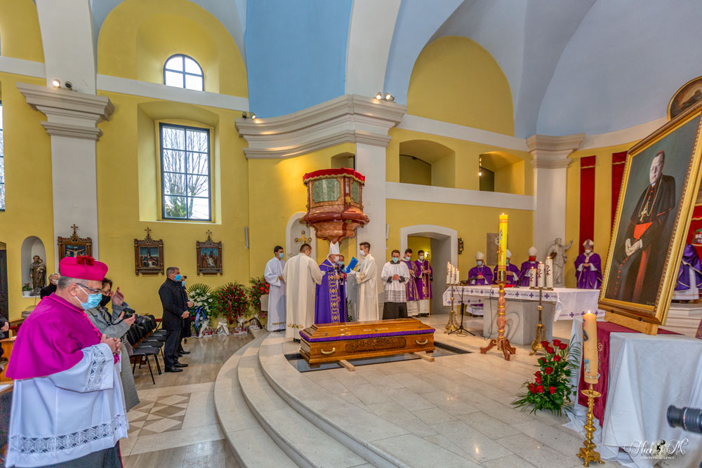 Nad mrtvačkim kovčegom od svojeg prethodnika molitvama se oprostio  biskup gospićko-senjski mons. Zdenko Križić. Posmrtni ostaci preminulog dr. Bogovića potom su na vječni počinak spuštani u kriptu, podno oltara katedrale.