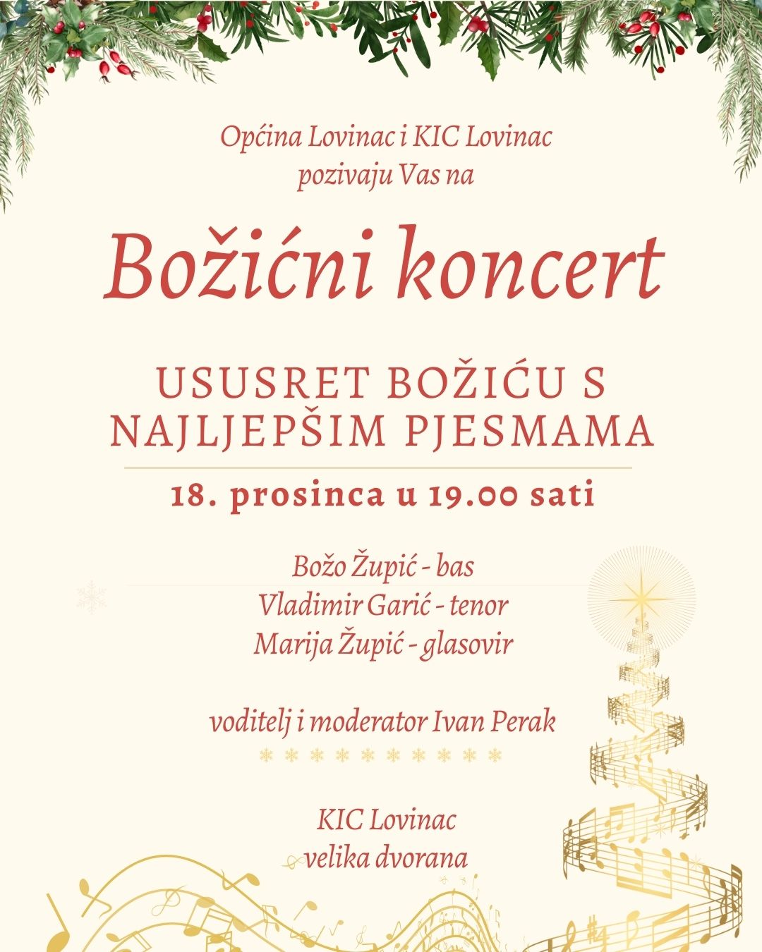 Srijeda 18.prosinca U KIC-u je rezervirana za Božićni koncert “Ususret Božiću s najljepšim pjesmama” koji će se održati s početkom u 19 sati.