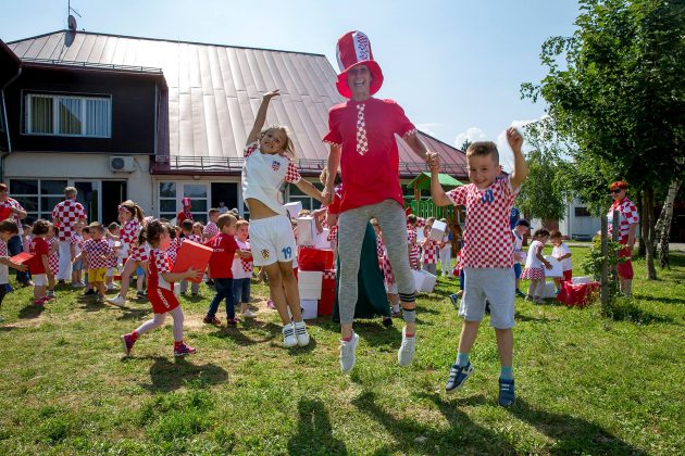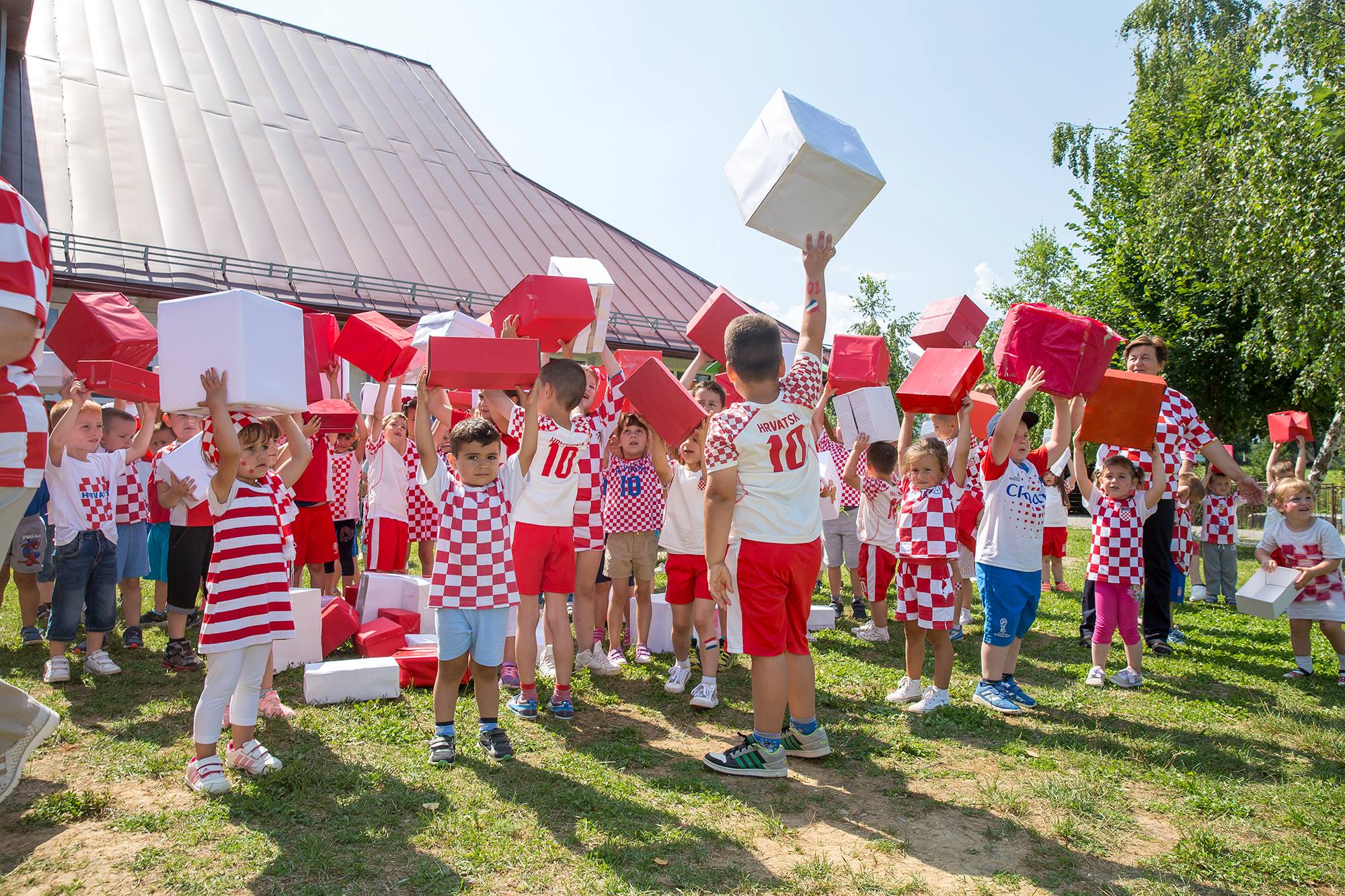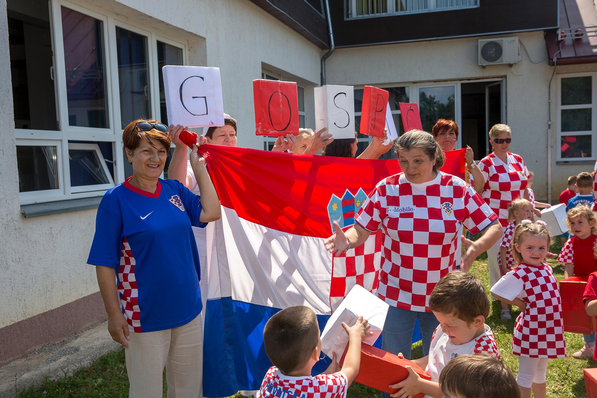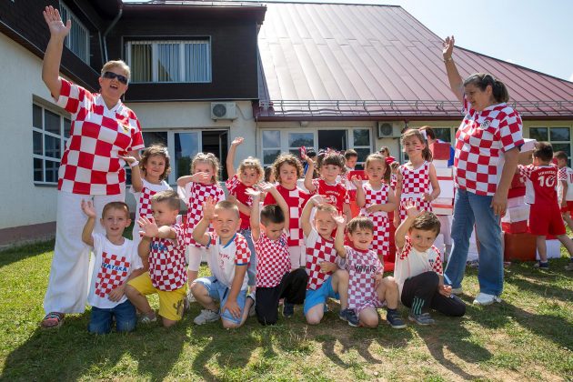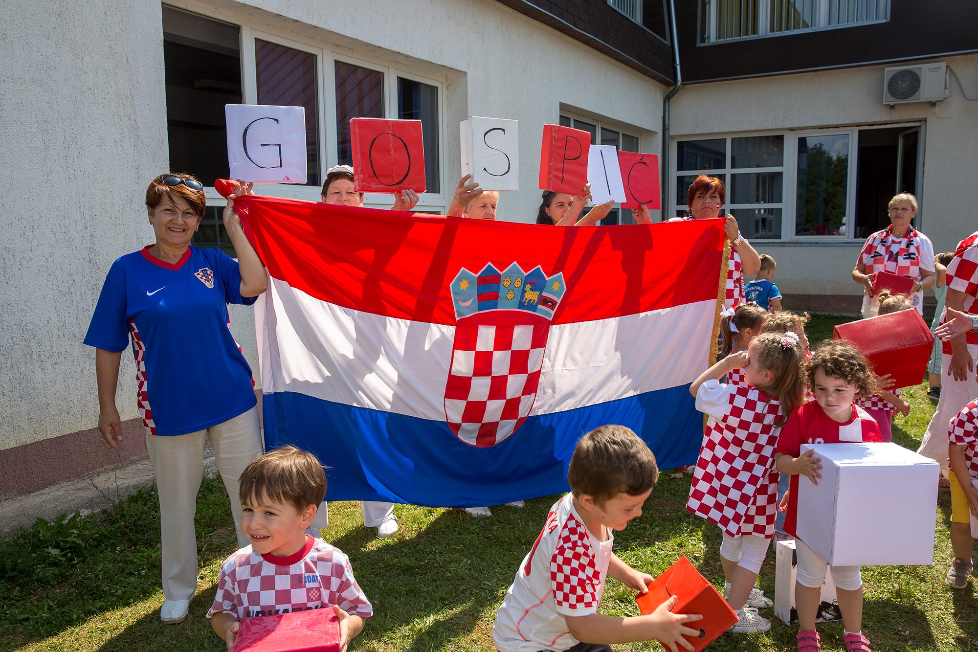 Dječji vrtić Pahuljica danas je svoje najmlađe navijače pripremio za finale utakmice između  Hrvatske i Francuske koja će se odigrati u nedjelju.  Najmlađi gospićki navijači obučeni u hrvatske dresove bacali su “kocke” u zrak davajući podršku “Vatrenima”.