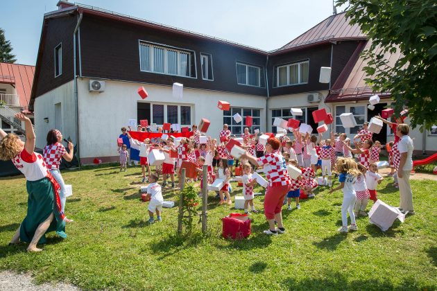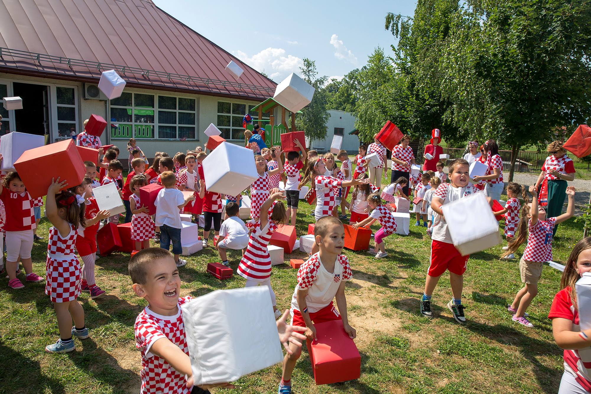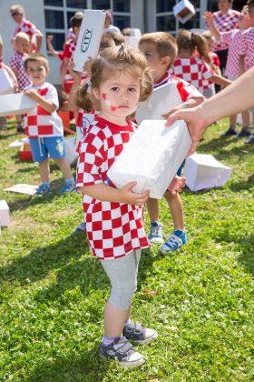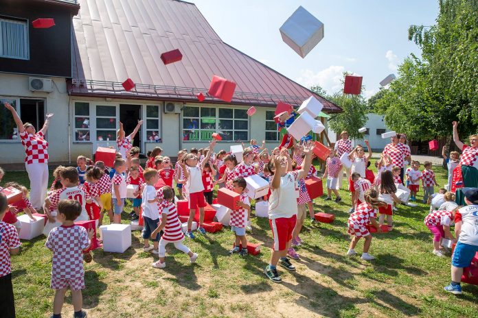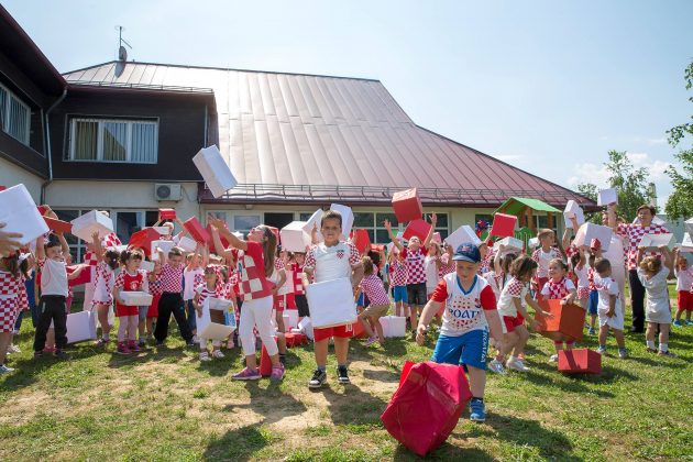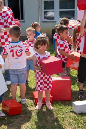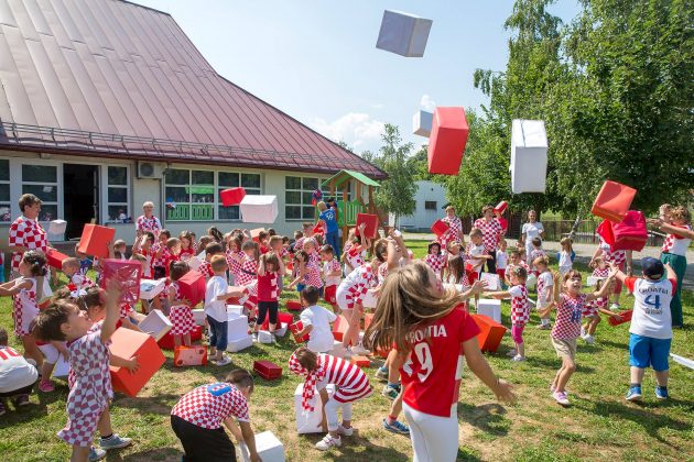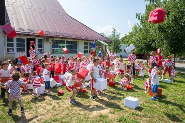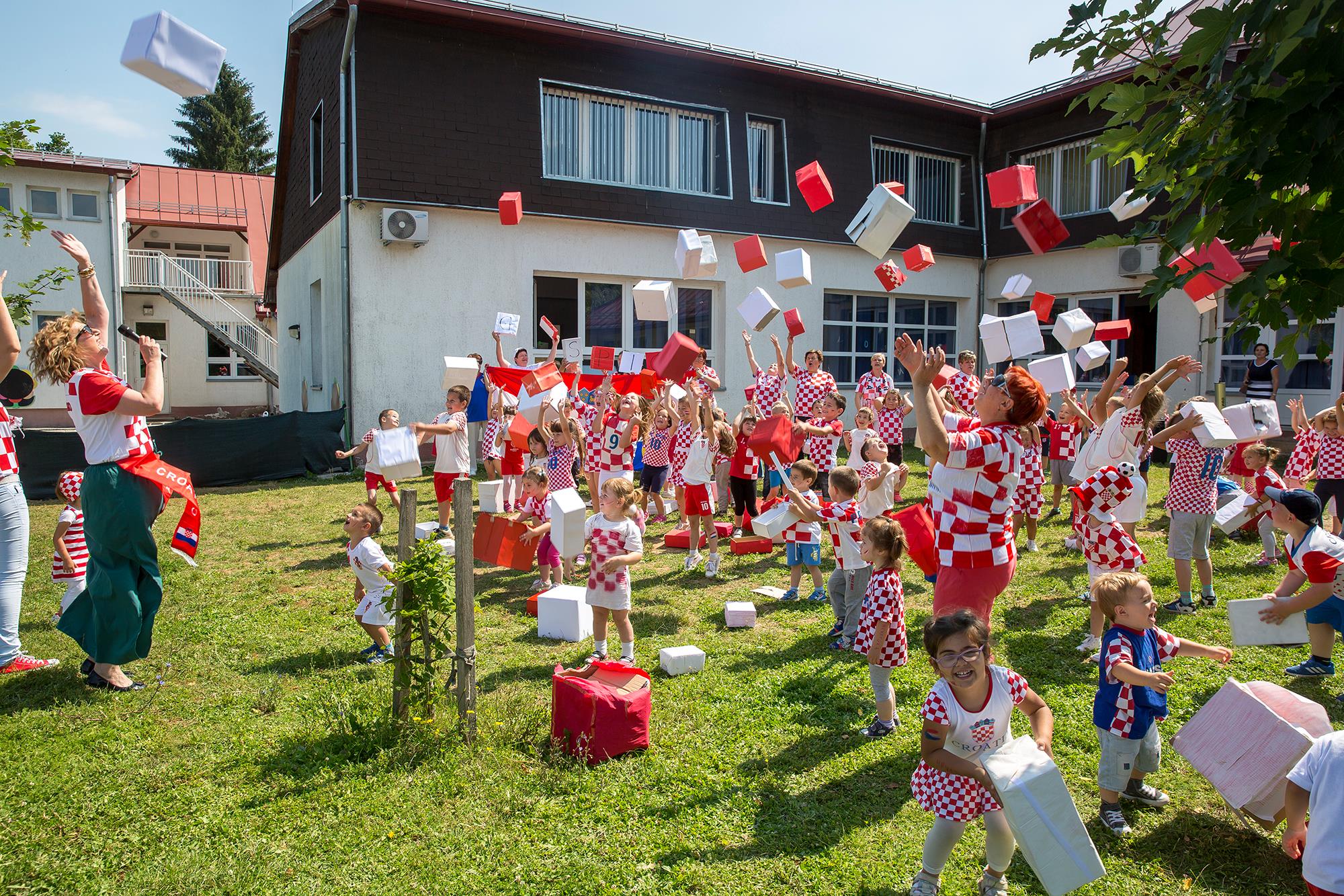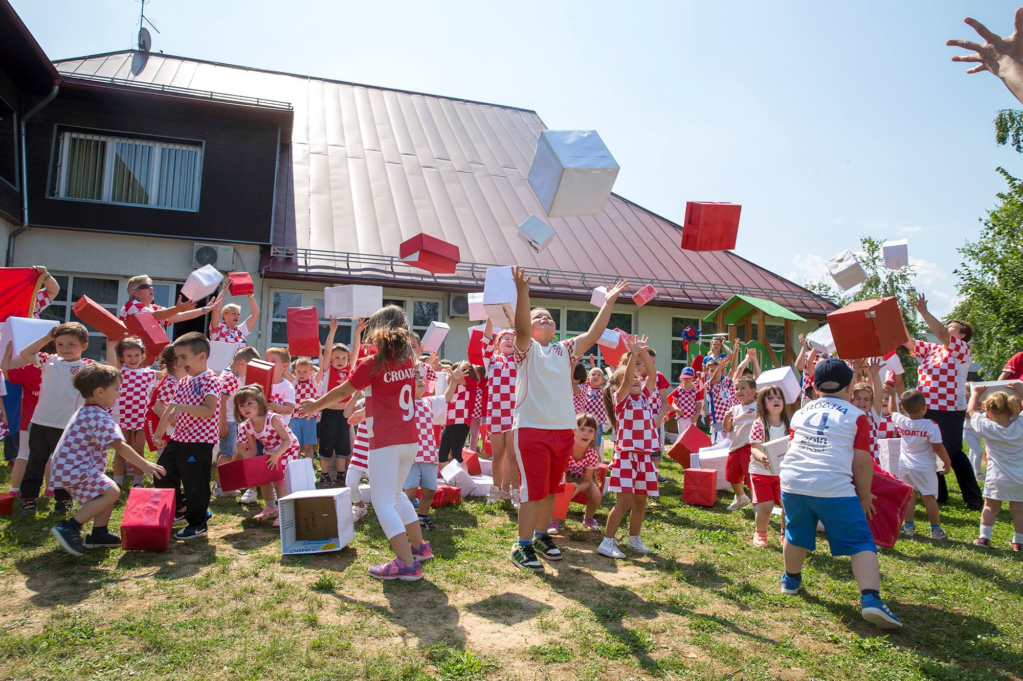 Dječji vrtić Pahuljica danas je svoje najmlađe navijače pripremio za finale utakmice između  Hrvatske i Francuske koja će se odigrati u nedjelju.  Najmlađi gospićki navijači obučeni u hrvatske dresove bacali su “kocke” u zrak davajući podršku “Vatrenima”.