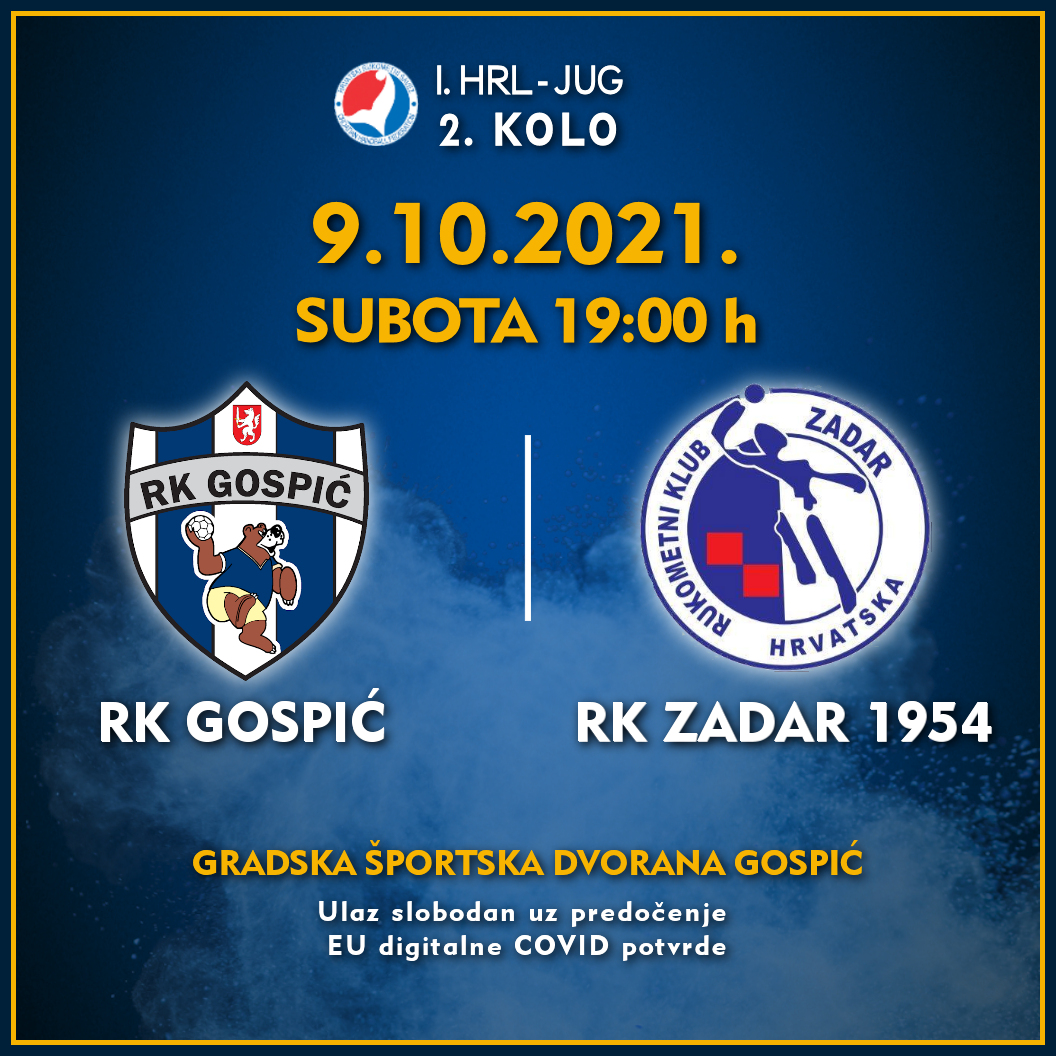 Za pobjedu u utakmici 2. kola 1.HRL jug protiv RK Zadar 1954 koja je u Gradskoj sportskoj dvorani u Gospiću na rasporedu u subotu, 9. listopada 2021. godine, biti će potrebna velika podrška s tribina.