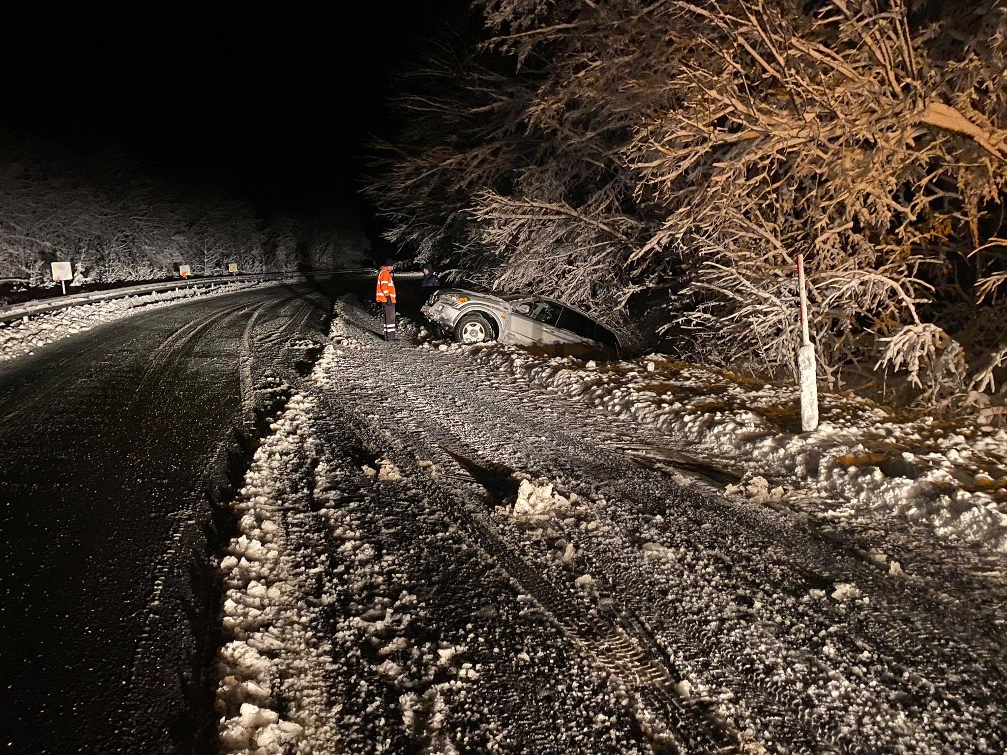 Malo leda i snijega večeras su skrivili prometnui nezgodu jednog vozača s područja Dalmacije. Nenavikao na ovakve uvjete na cesti, „puzavi“ kolnik bio je preudan za slijetanje u jarak kod Papuče. Sve je na sreću dobro prošlo. Bez ozljeda i s manjom materijalnom štetom. Pa vi onda samo manitajte po puzavoj cesti. Dobro je govorio taj visoko pozicionirani policajac.