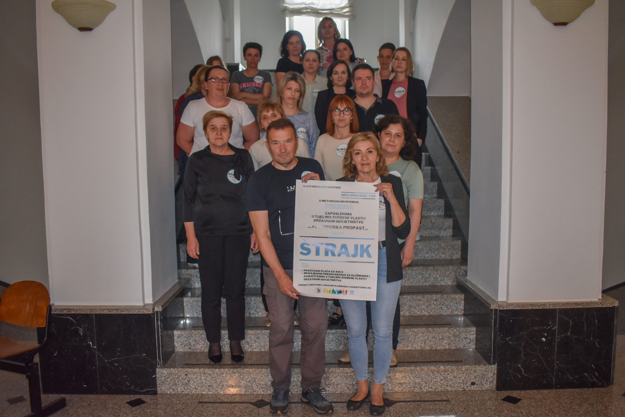 Vlada je donijela odluku o povećanju plaća od 60 do 100 eura zaposlenicima u državnim tijelima s najnižim primanjima. Podržavamo to povećanje, ali i dalje tražimo da se plaće zaposlenika u sudskim tijelima i državnim odvjetništvima povećaju za 300 eura, čime se dolazi do prvotnih 400 eura neto koliko smo od početka tražili. A taj početak krenuo je još prije tri godine i sve ove godine vladajući nas nisu htjeli saslušati. Čak su nam htjeli i zabraniti štrajk, ali i Županijski sud je presudio da je naša borba zakonita.
